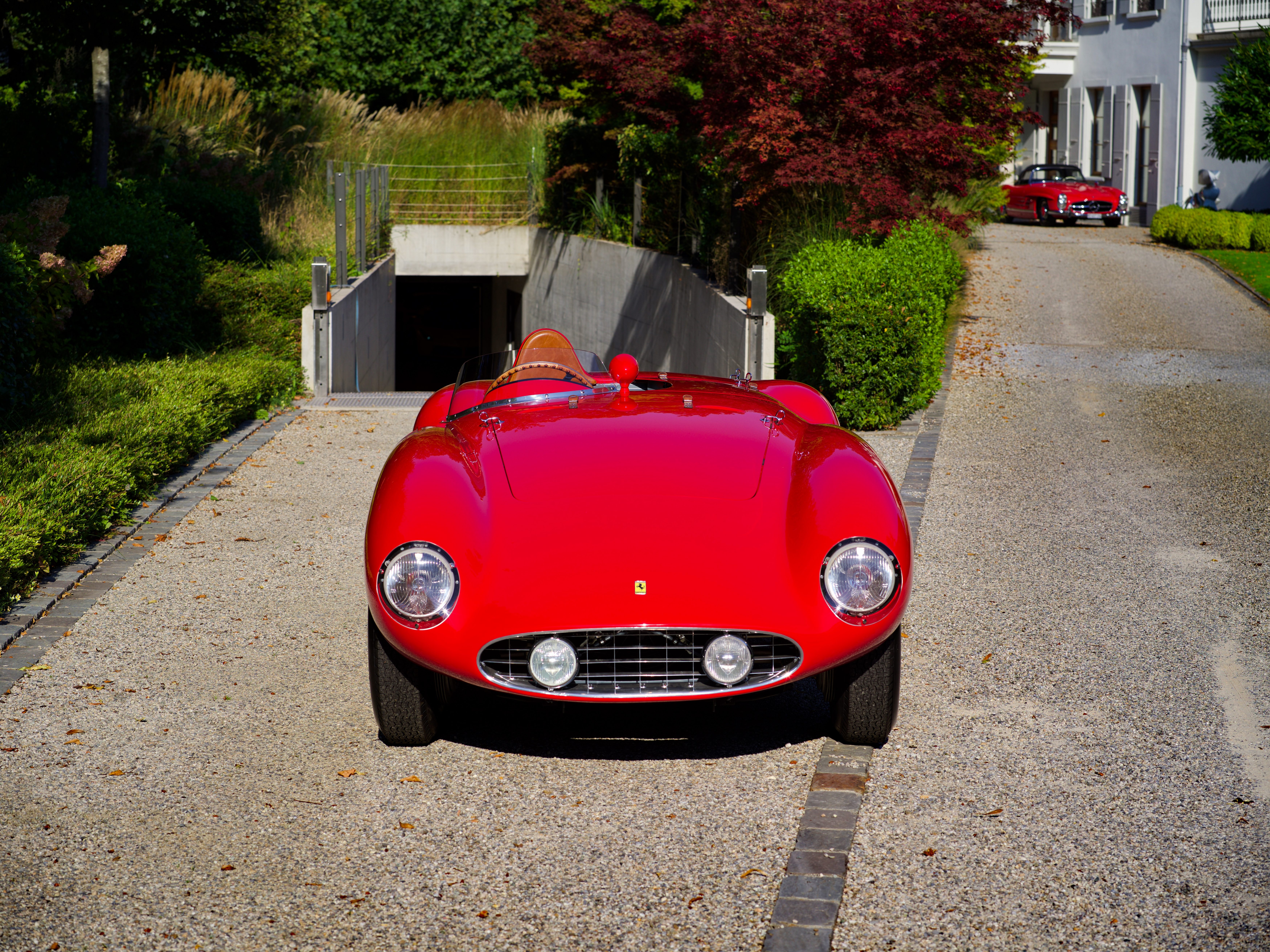 The Ferrari 750 Monza is one of the most charismatic and successful sports racing Ferraris of the 1950s. Introduced in 1954, the model made an immediate impact when the prototype debuted at Monza and famously finished first and second, underlining Ferrari’s dominance in four-cylinder sports racing at the time. Powered by a development of the four-cylinder Type 555 engine, featuring twin overhead camshafts and producing strong horsepower and exceptional torque, the 750 Monza delivered particularly impressive driving characteristics in period. Among its notable achievements was victory in the 1954 Tourist Trophy, further cementing the model’s competition pedigree. Produced in very limited numbers, the 750 Monza remains one of the rarest and most desirable of Ferrari’s early competition cars.