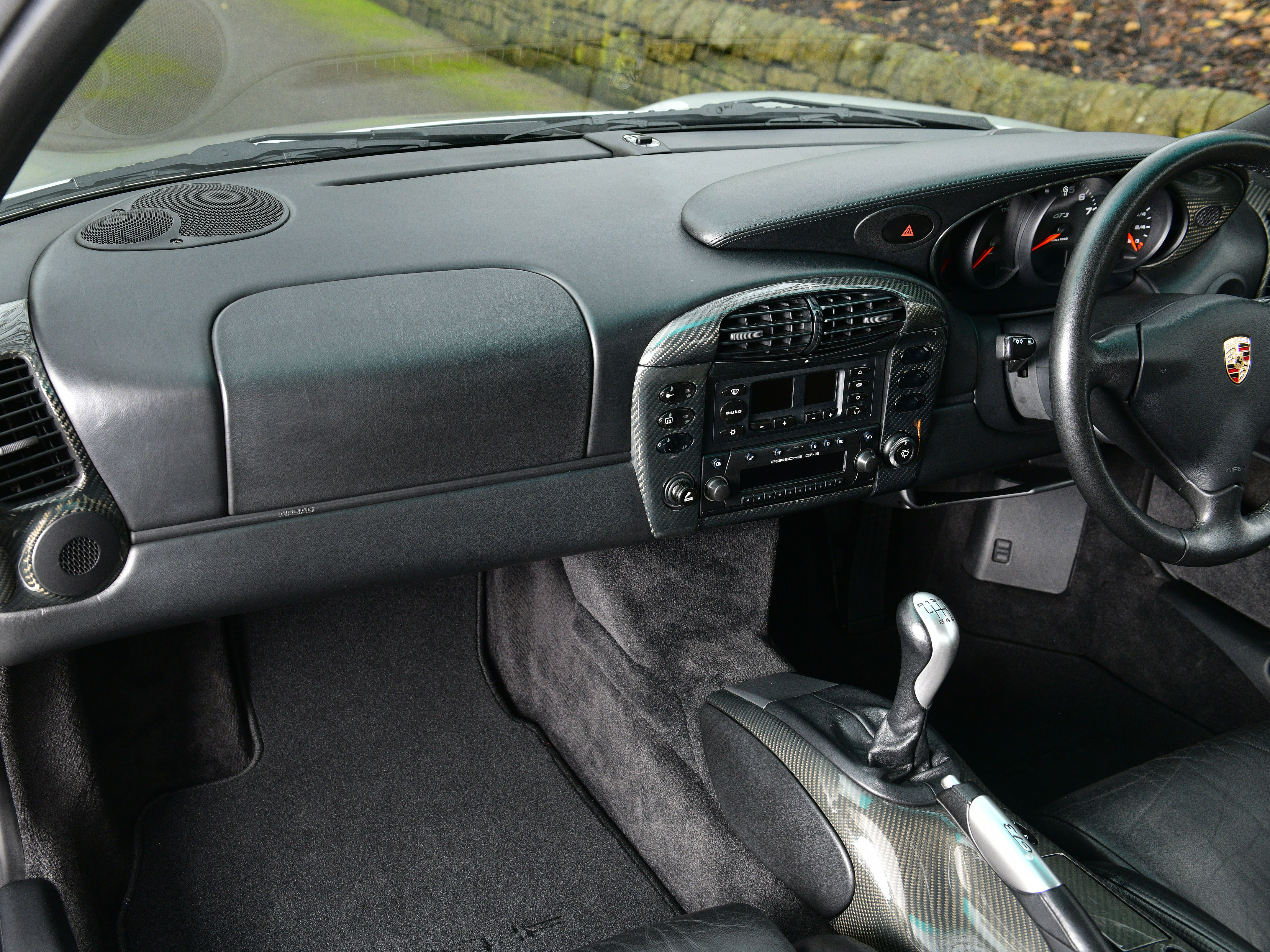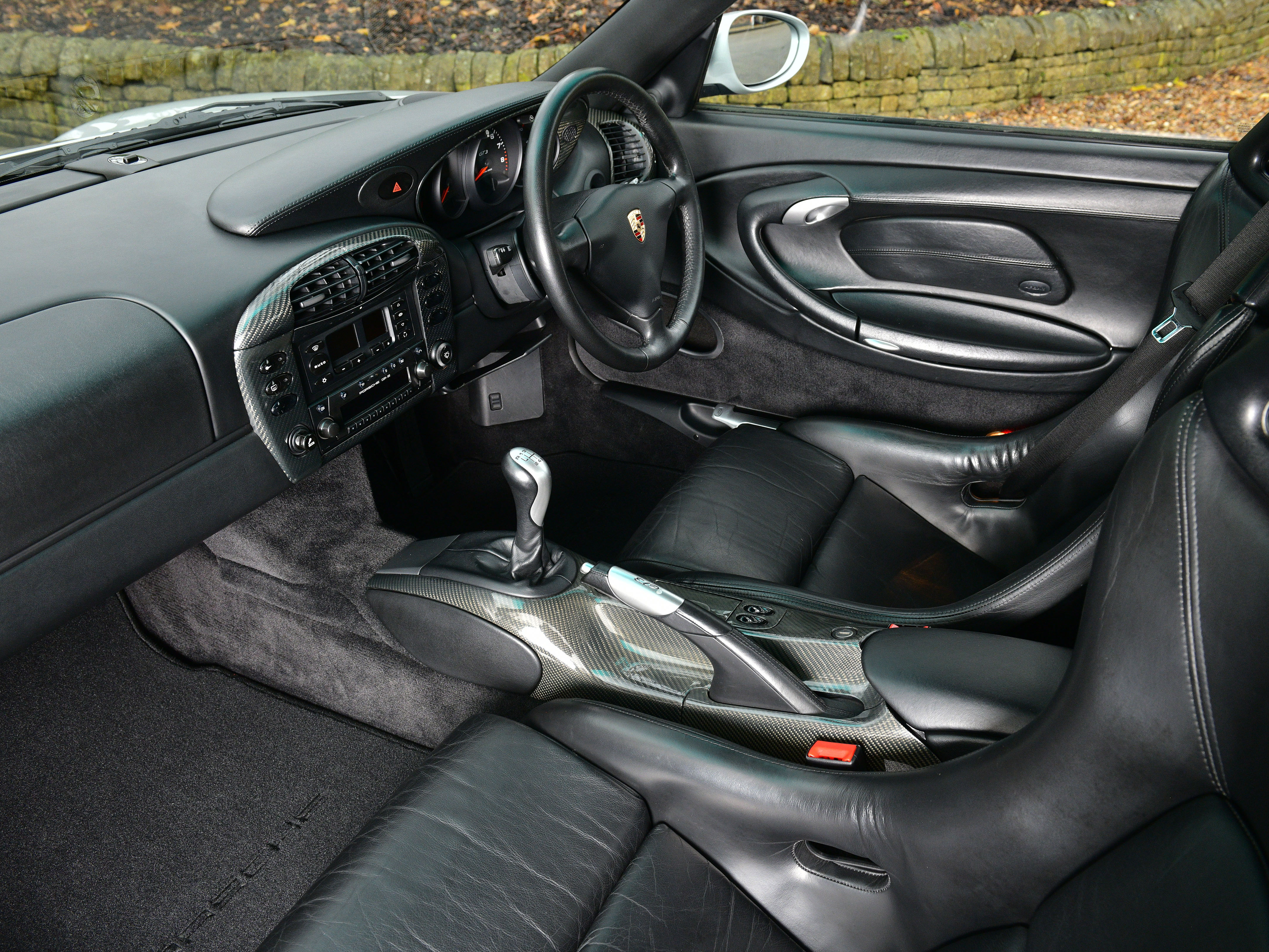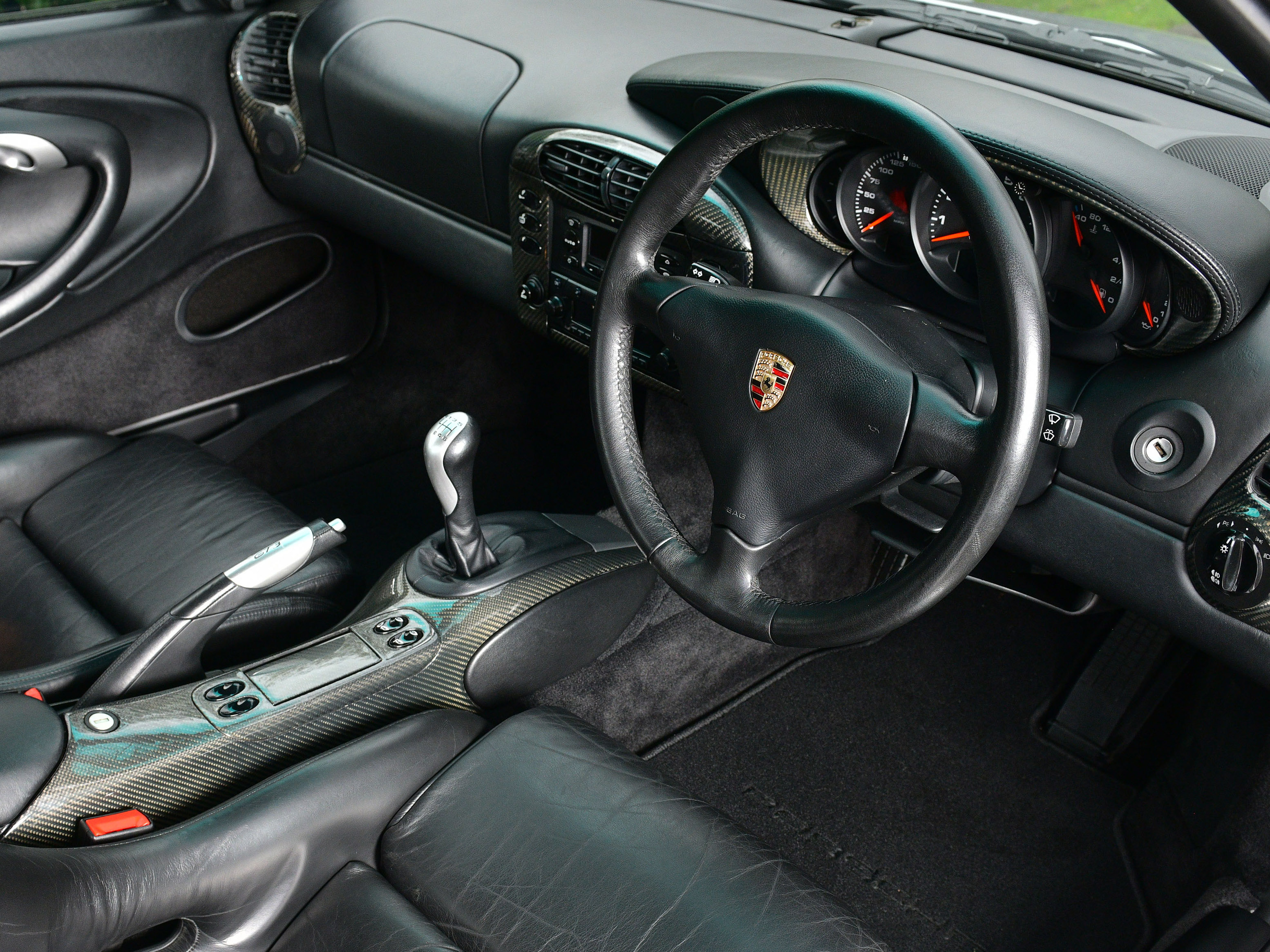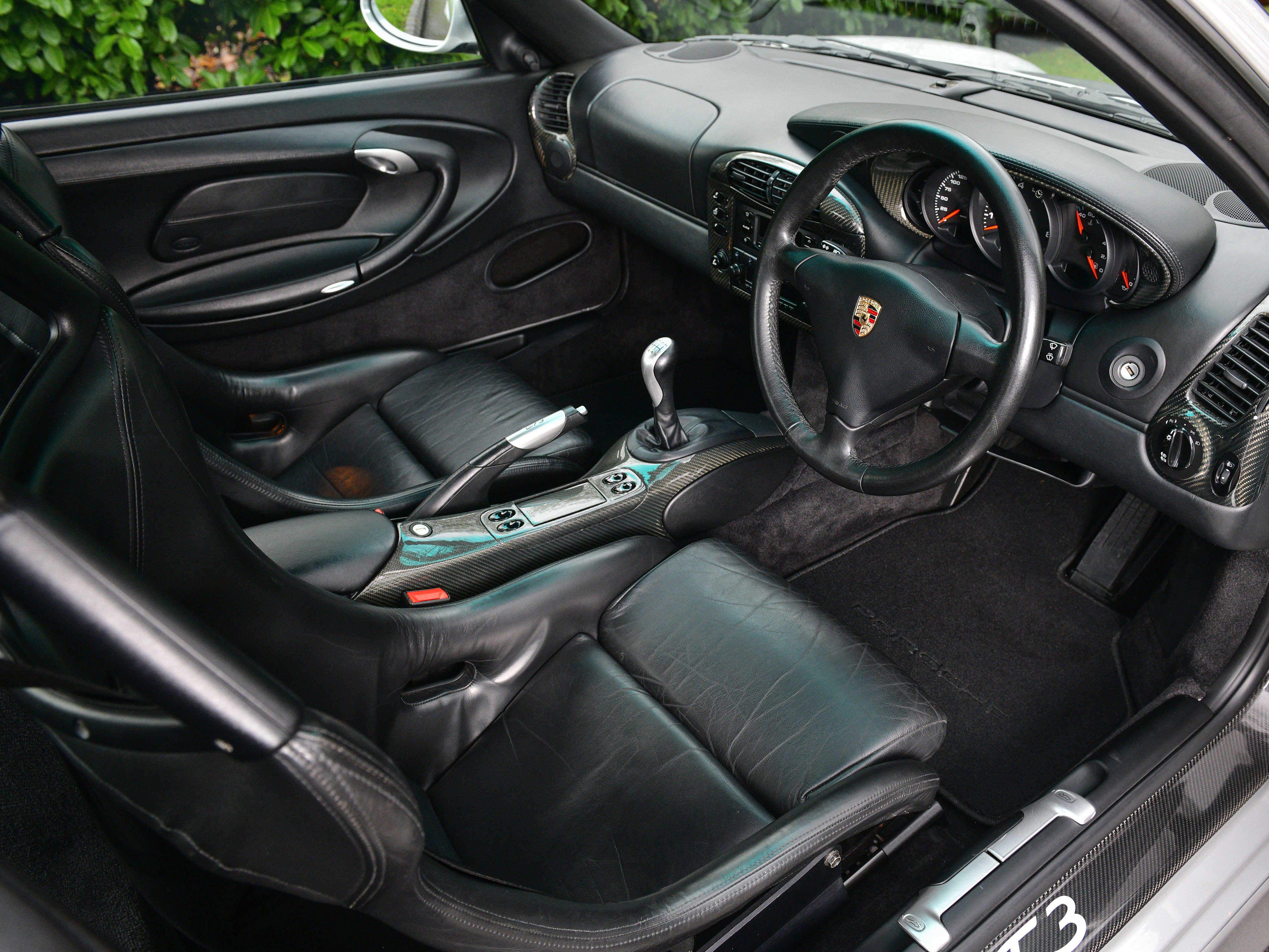 This particular UK supplied car was ordered new with the following factory options and features: Bucket seats, Air Conditioning, CDR-22 CD Radio, Manually adjustable door mirrors, 3- Spoke Airbag steering wheel, power windows, Tinted windscreen top tint and the all important Aerokit. Additionally, In July 2001, Porsche Colchester supplied and fitted a Carbon fibre dash, Carbon fibre centre console and Carbon fibre door sills.