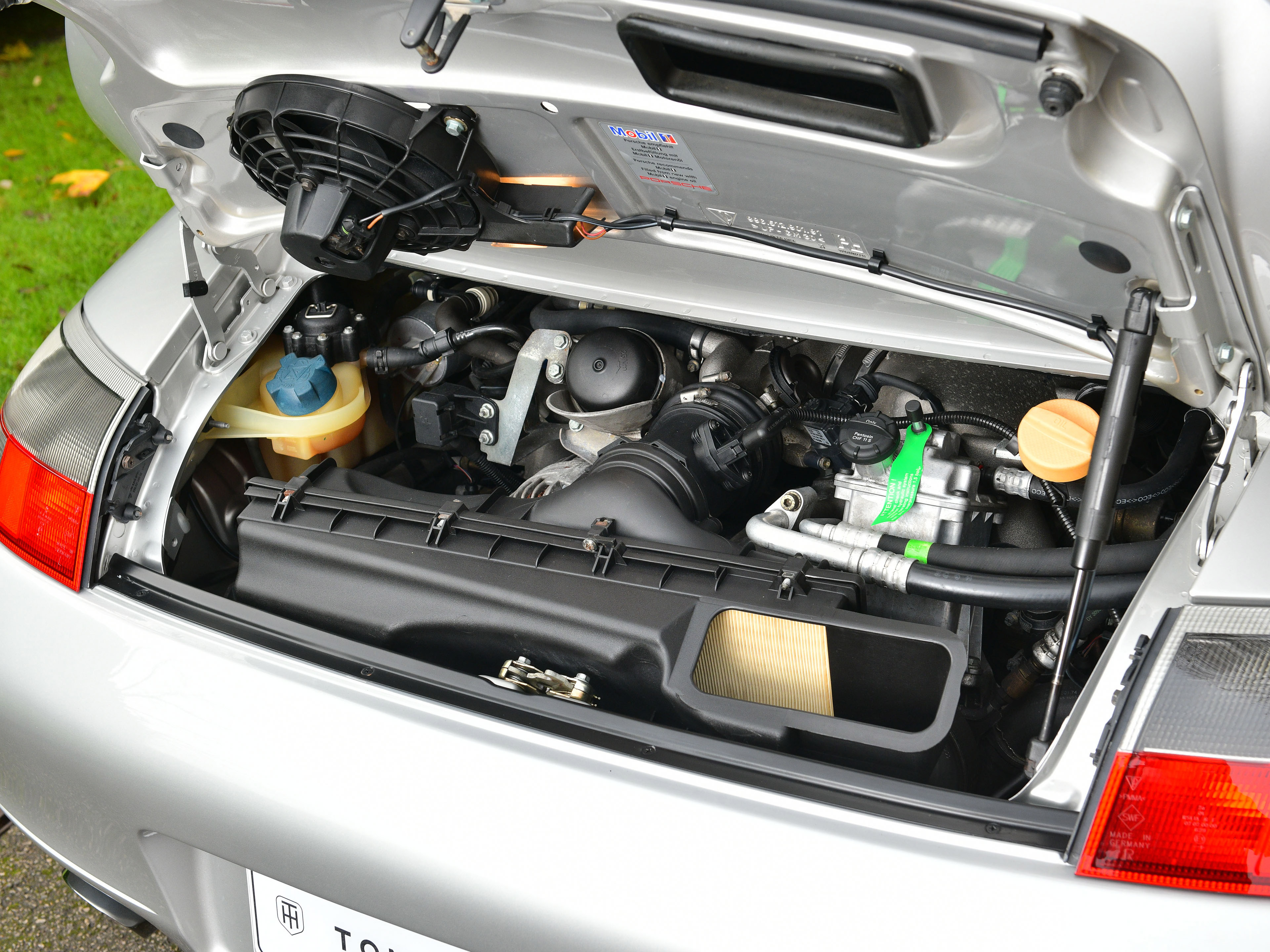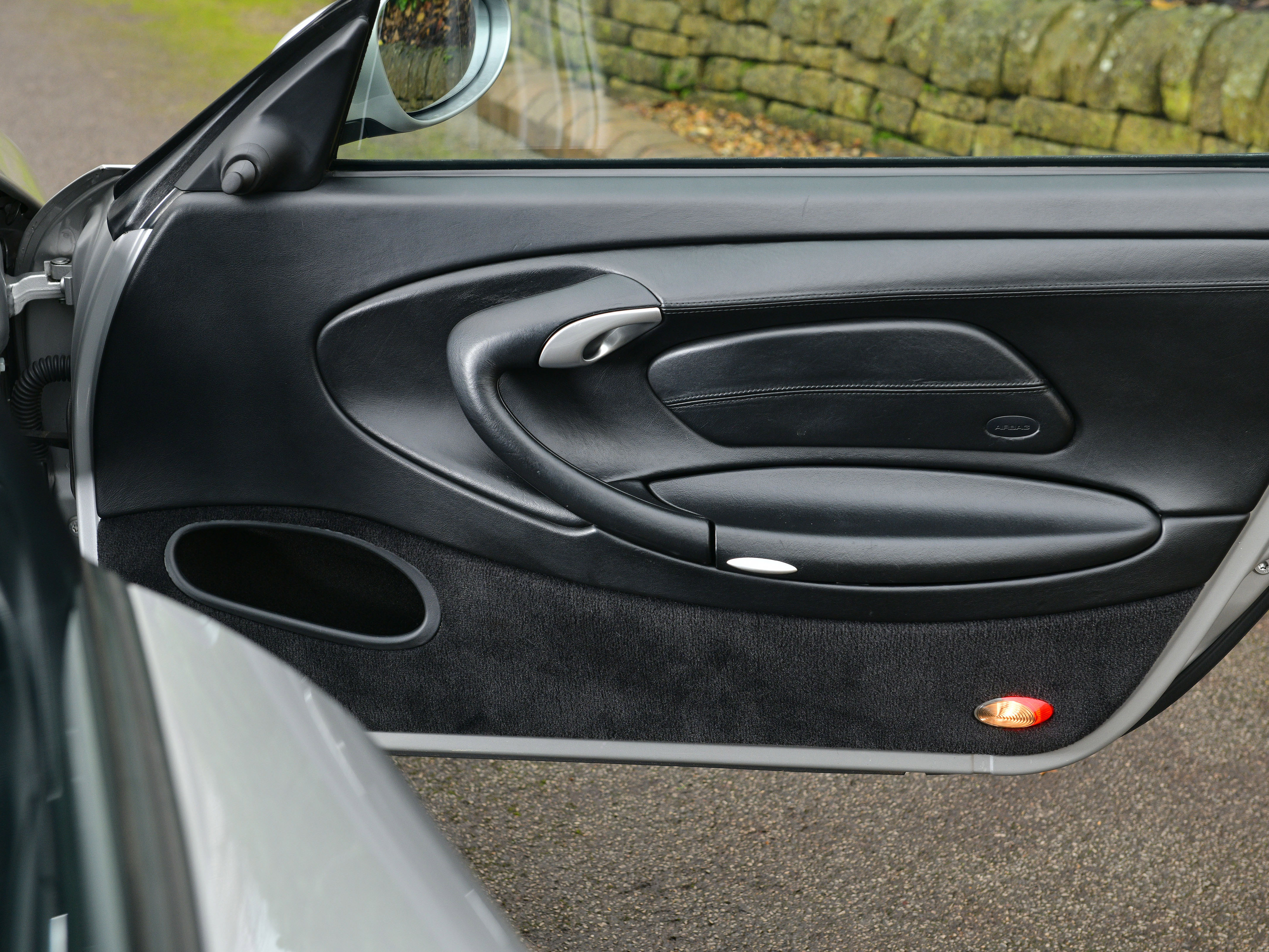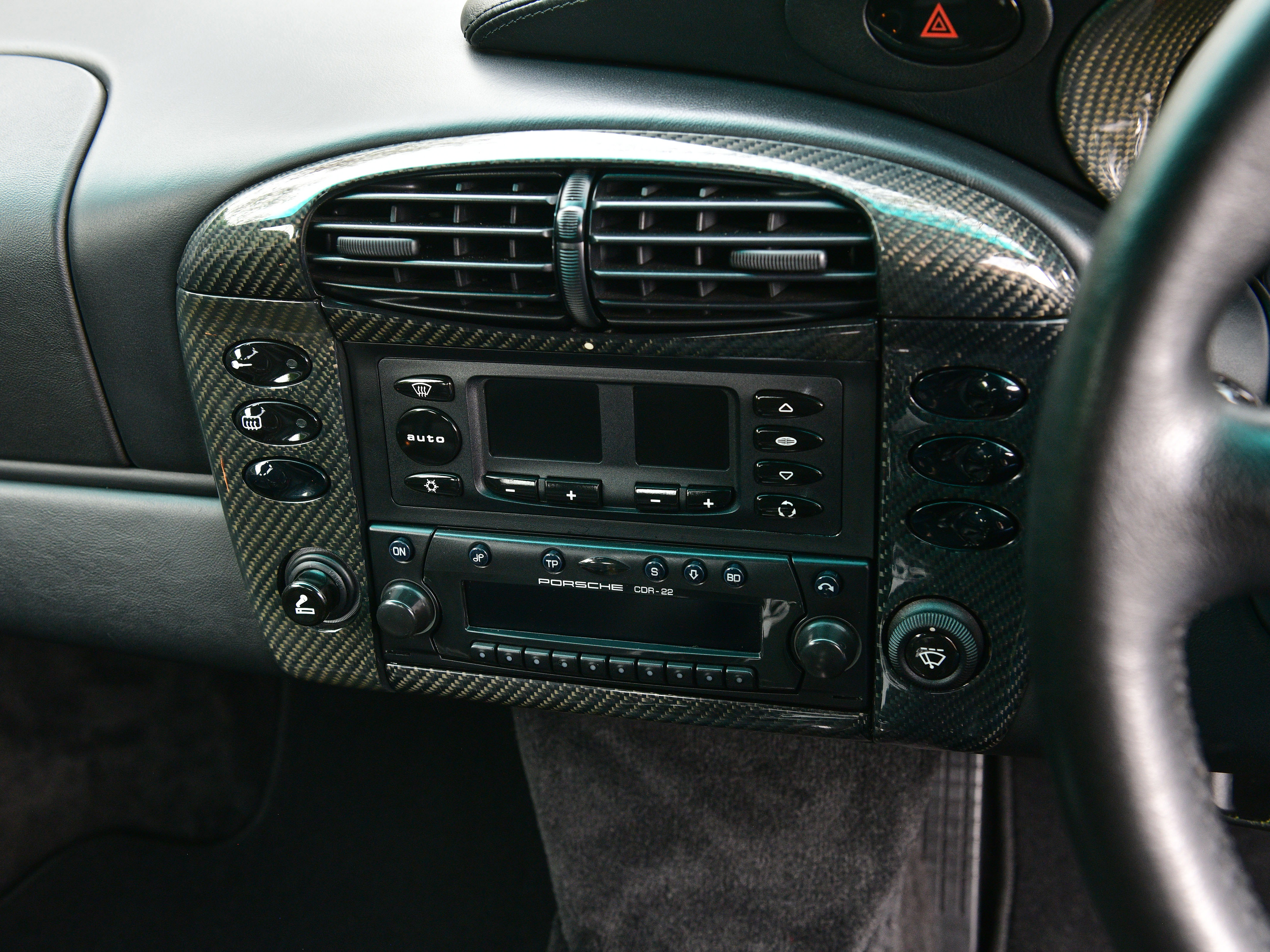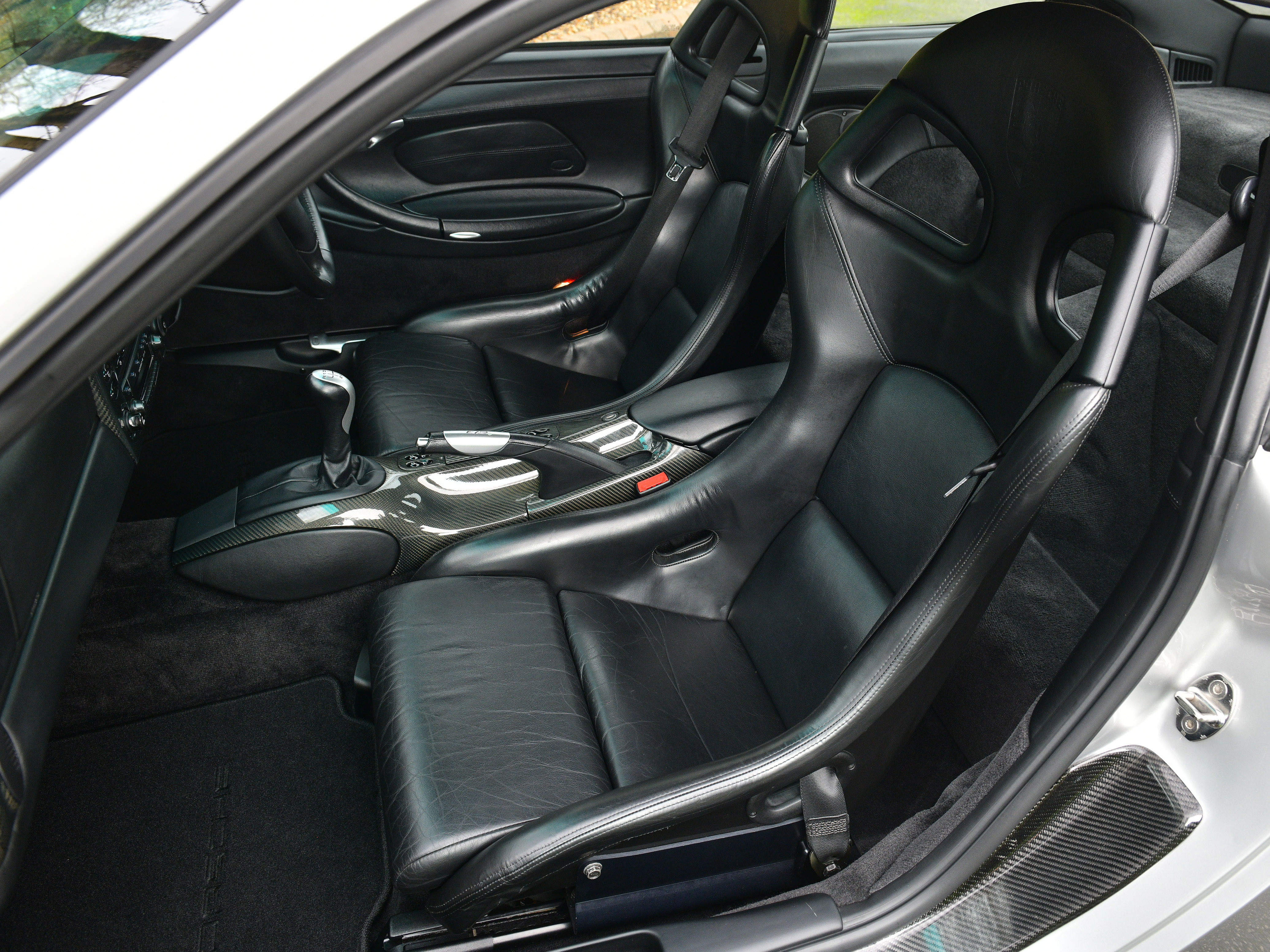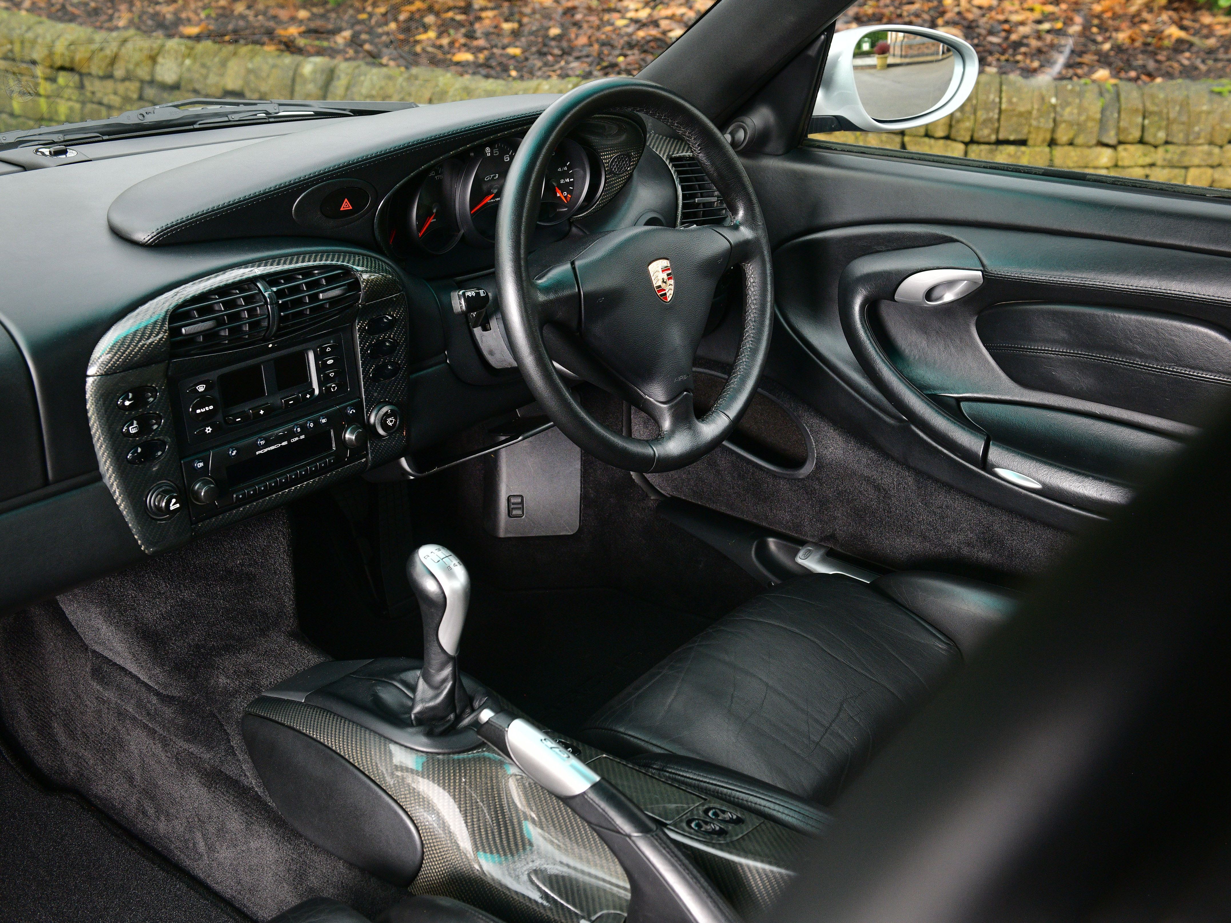 This particular UK supplied car was ordered new with the following factory options and features: Bucket seats, Air Conditioning, CDR-22 CD Radio, Manually adjustable door mirrors, 3- Spoke Airbag steering wheel, power windows, Tinted windscreen top tint and the all important Aerokit. Additionally, In July 2001, Porsche Colchester supplied and fitted a Carbon fibre dash, Carbon fibre centre console and Carbon fibre door sills.