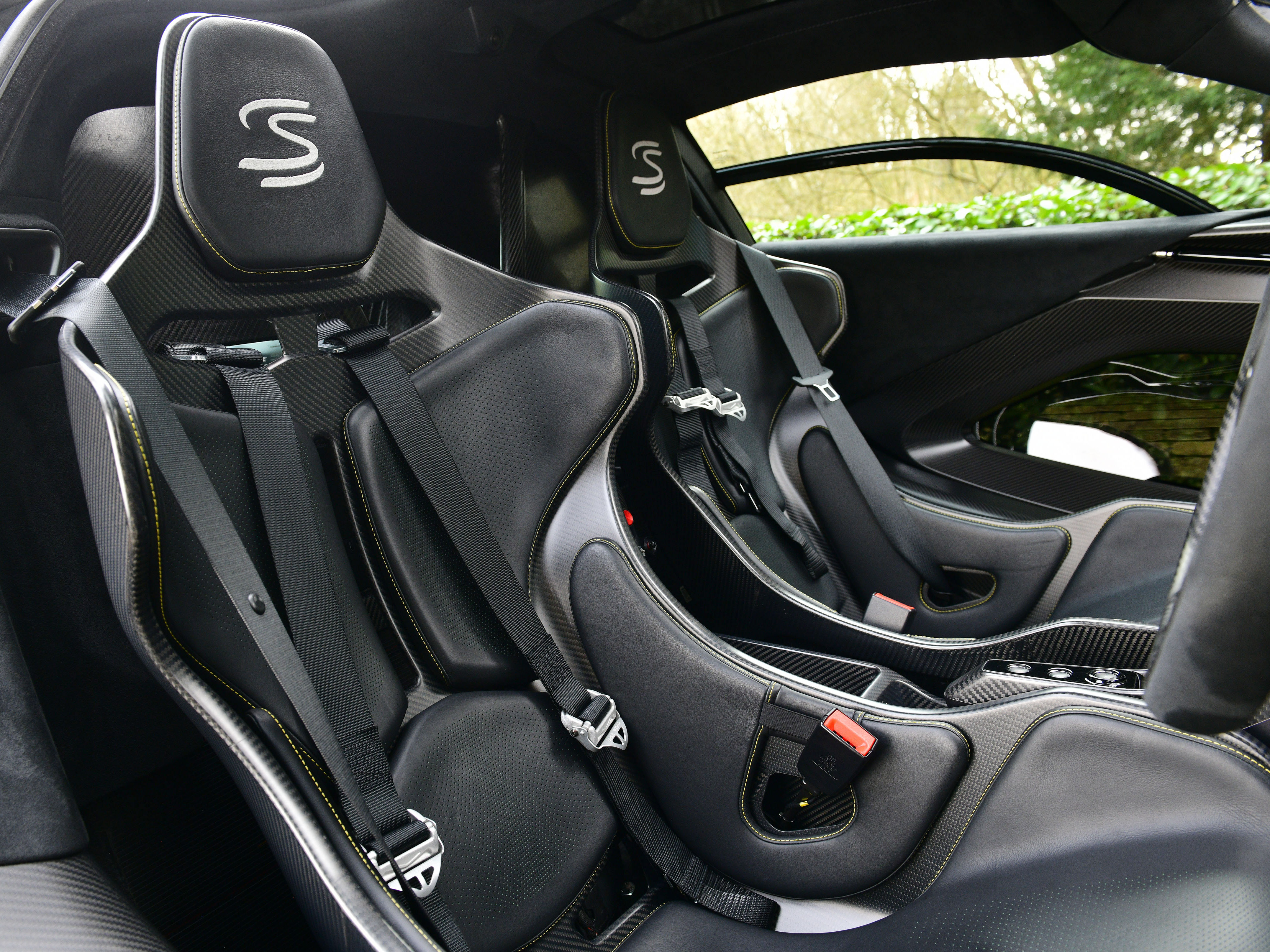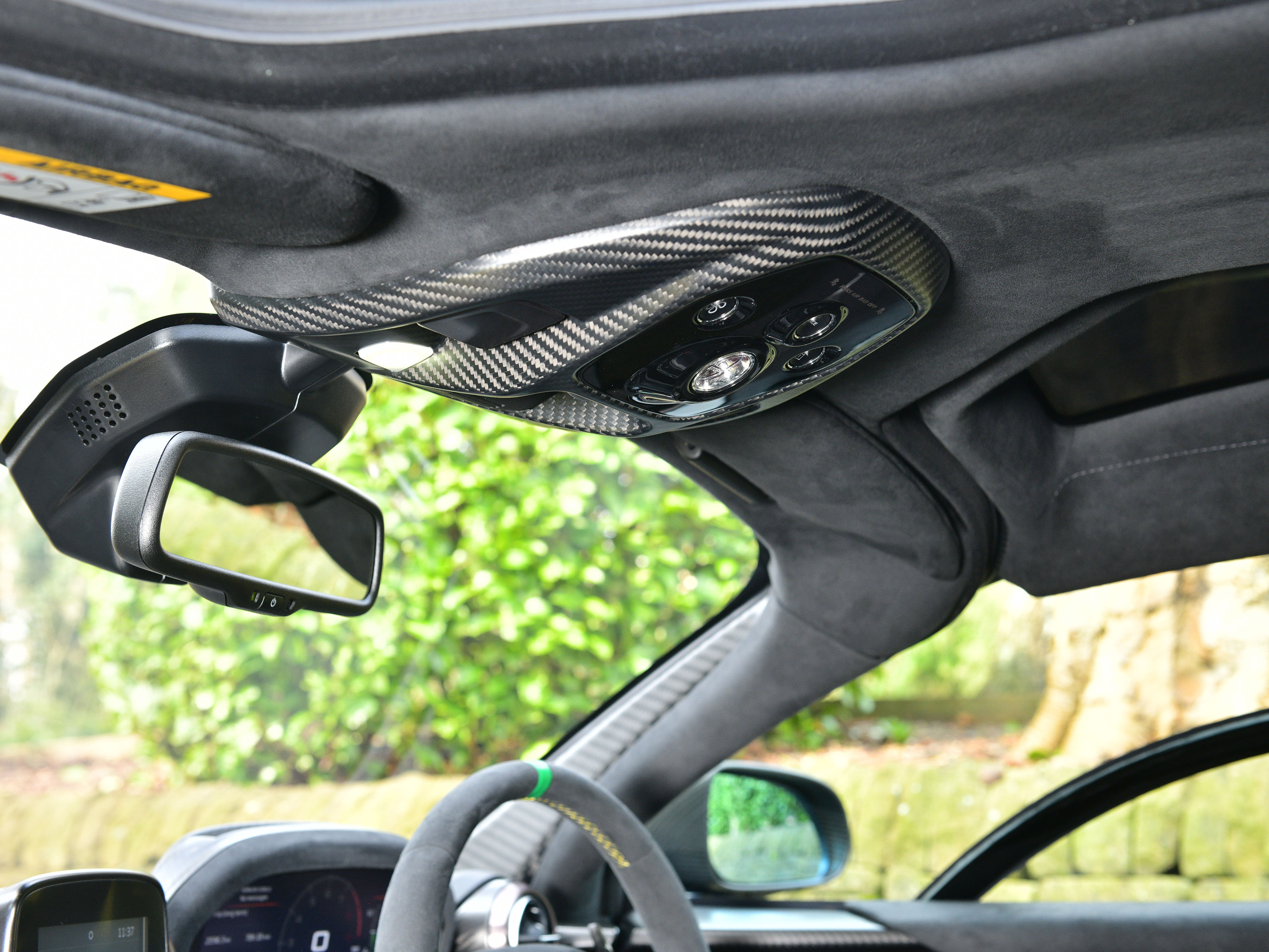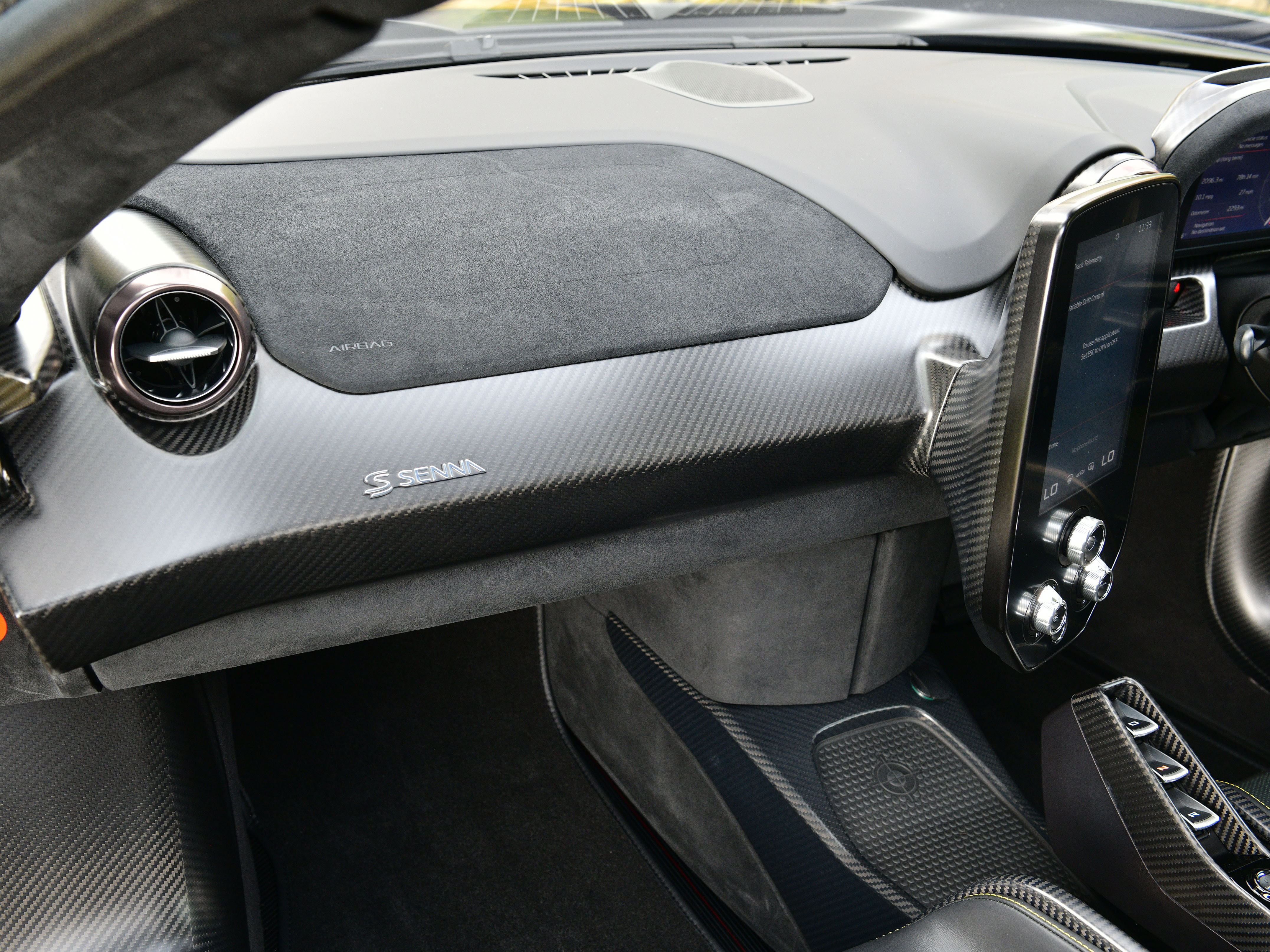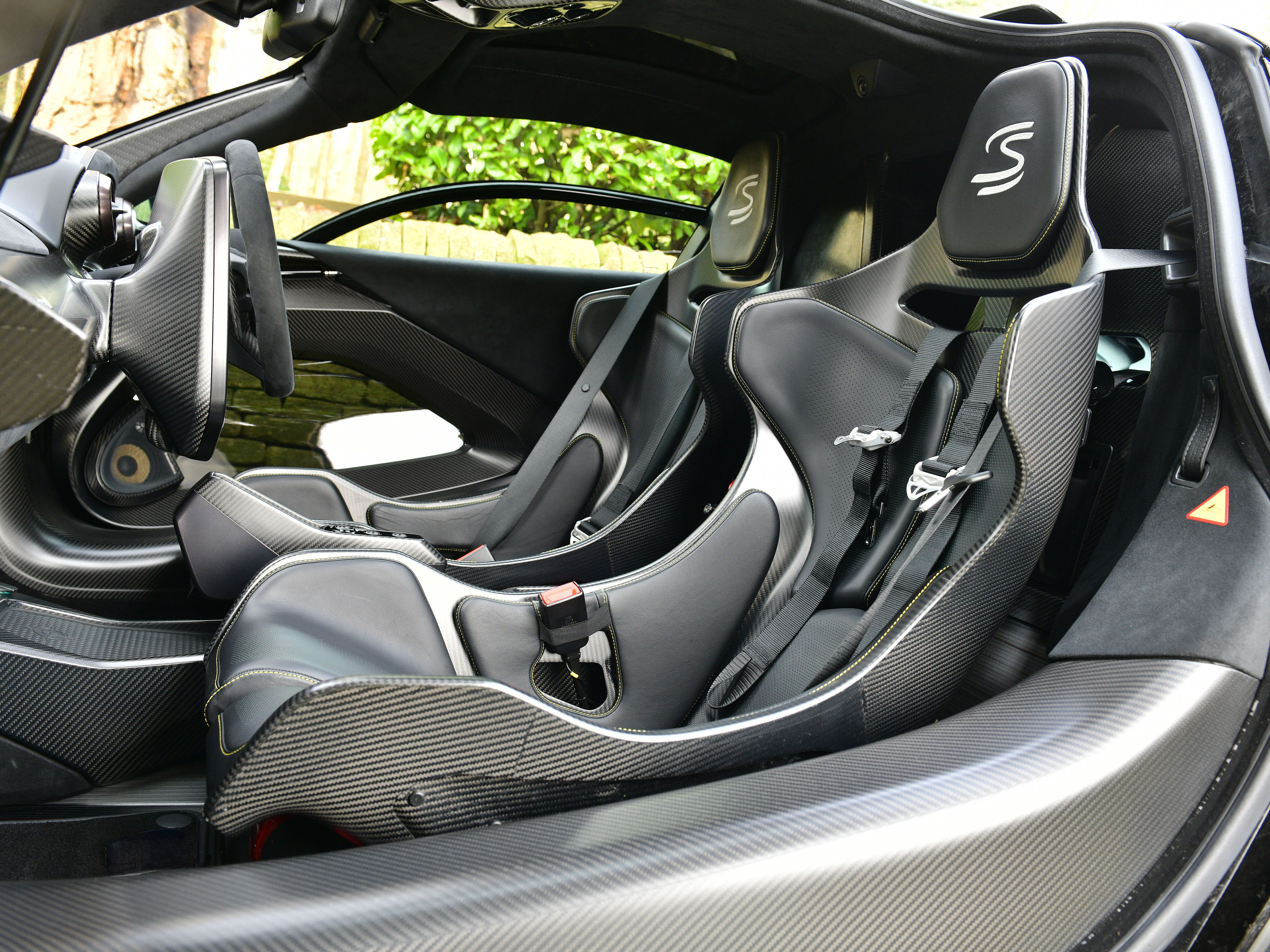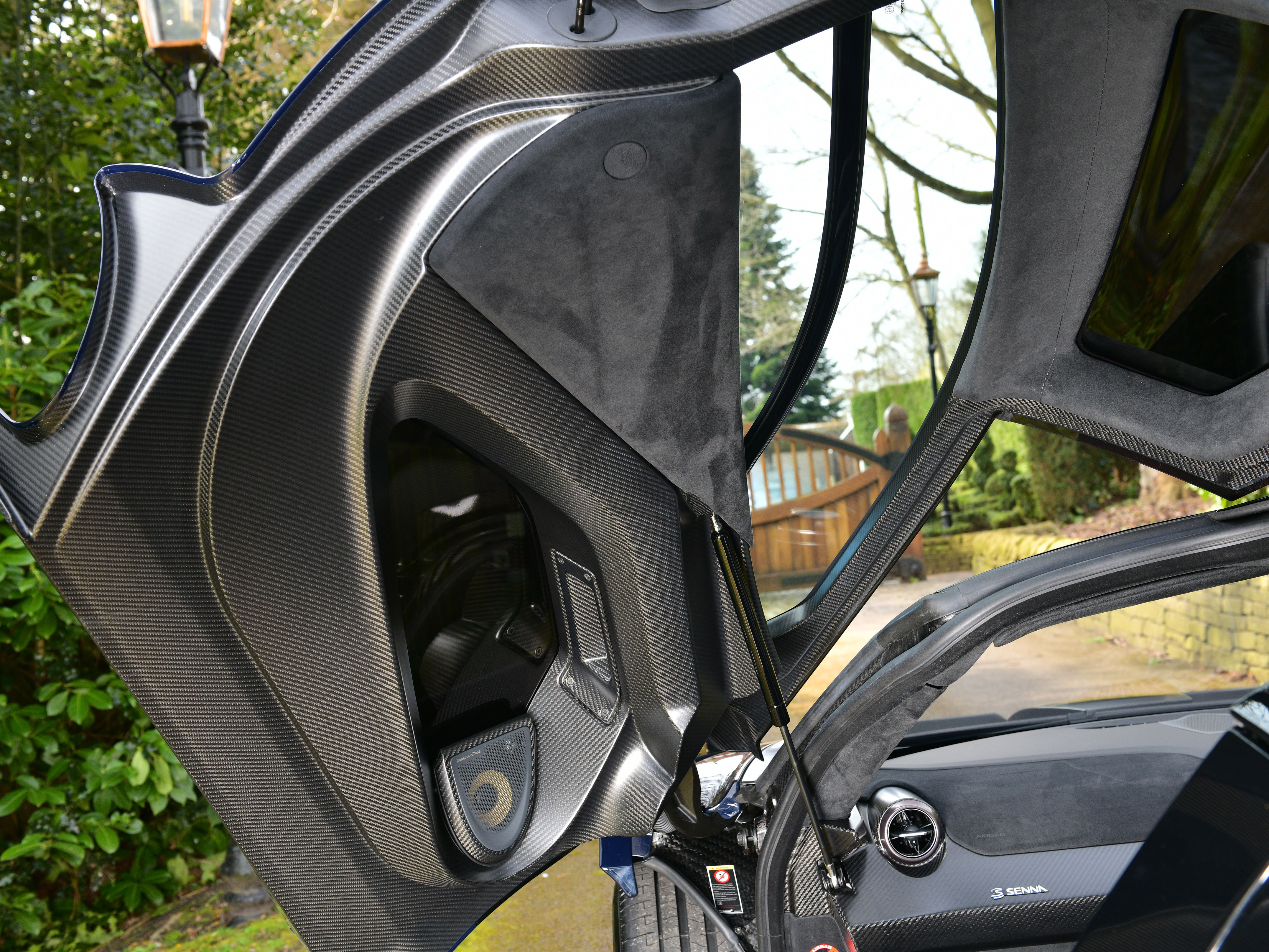 Specified with a host of MSO and factory options that includes a bespoke exterior livery (Brazil Blue paint, Solar Yellow callipers and Laurel Green centre lock nuts) inspired by the distinctive colours of Ayrton Senna’s iconic helmet. Other factory options include: Gorilla Glass on exterior door upper and lower door panel, soft close doors, MSO bespoke interior trim, Jet black leather seat pads with Laurel Green perforation and Solar Yellow contrast stitching, Solar Yellow contrast stitching to steering wheel, MSO bespoke steering wheel centre band in Laurel Green, MSO bespoke embroidered on headrests (double S logo in stone grey), Bowers & Wilkins 7 speaker audio system, 6 point harness in black, air conditioning, branded floor mat set, vehicle lifting system, carbon door mirrors, MSO bespoke satin VCF front aero blades, MSO darkest limo tint applied to upper and lower glass panels, sports exhaust, exhaust heatshield – dark stealth, carbon ceramic breaks, ultra-lightweight 9-spoke wheels, fire extinguisher, parking sensors front and rear, rear parking camera and vehicle tracking system.