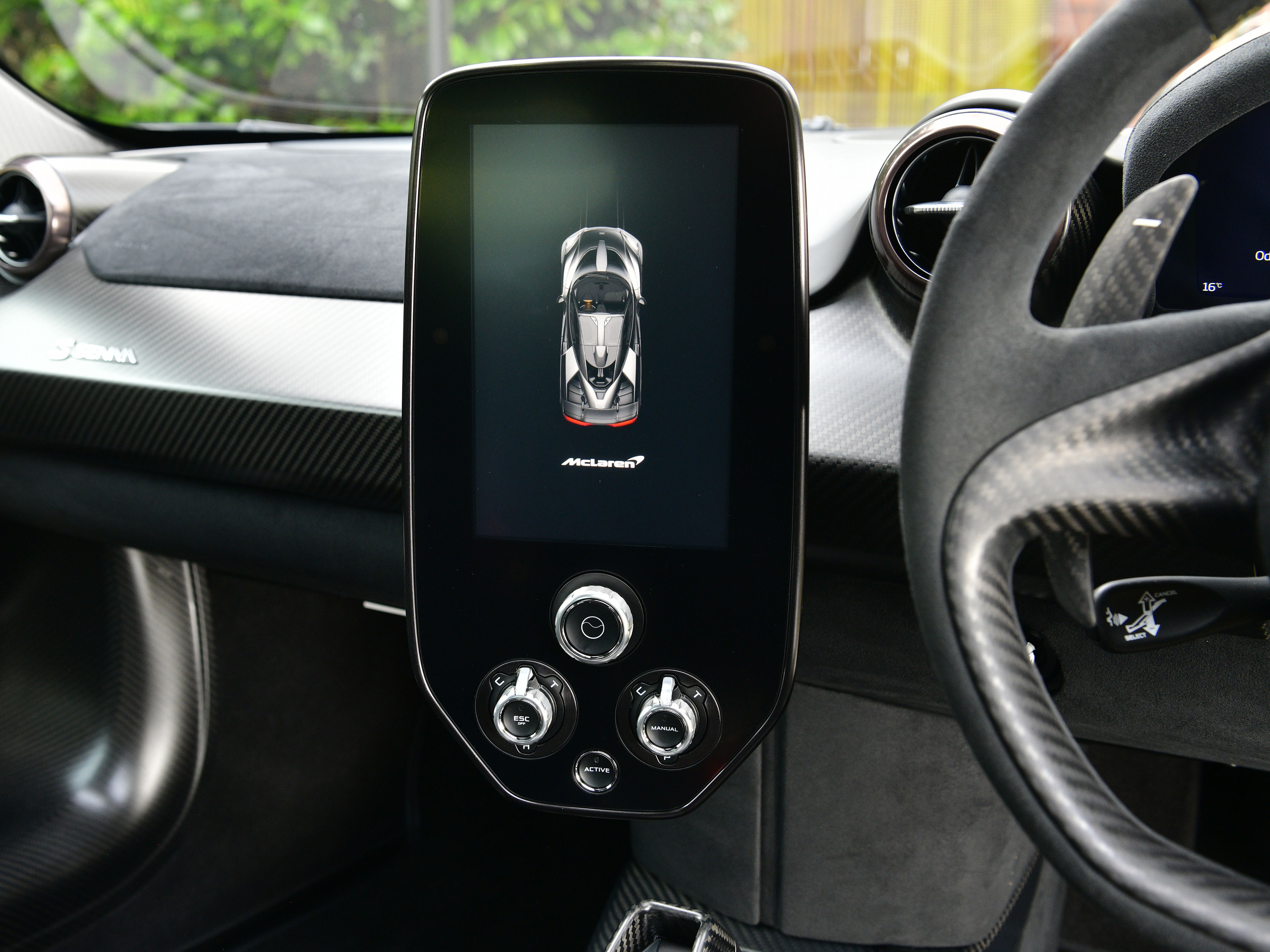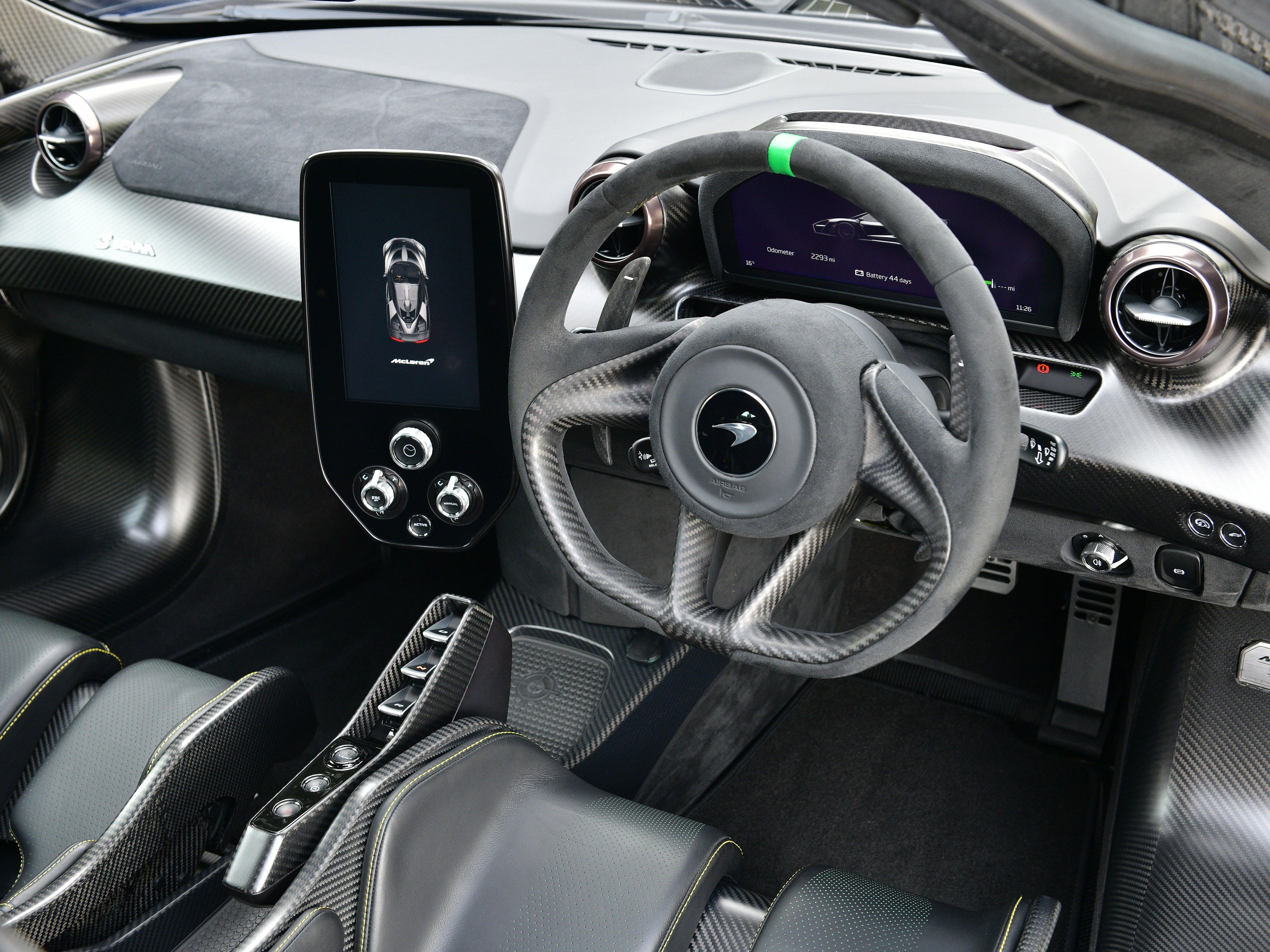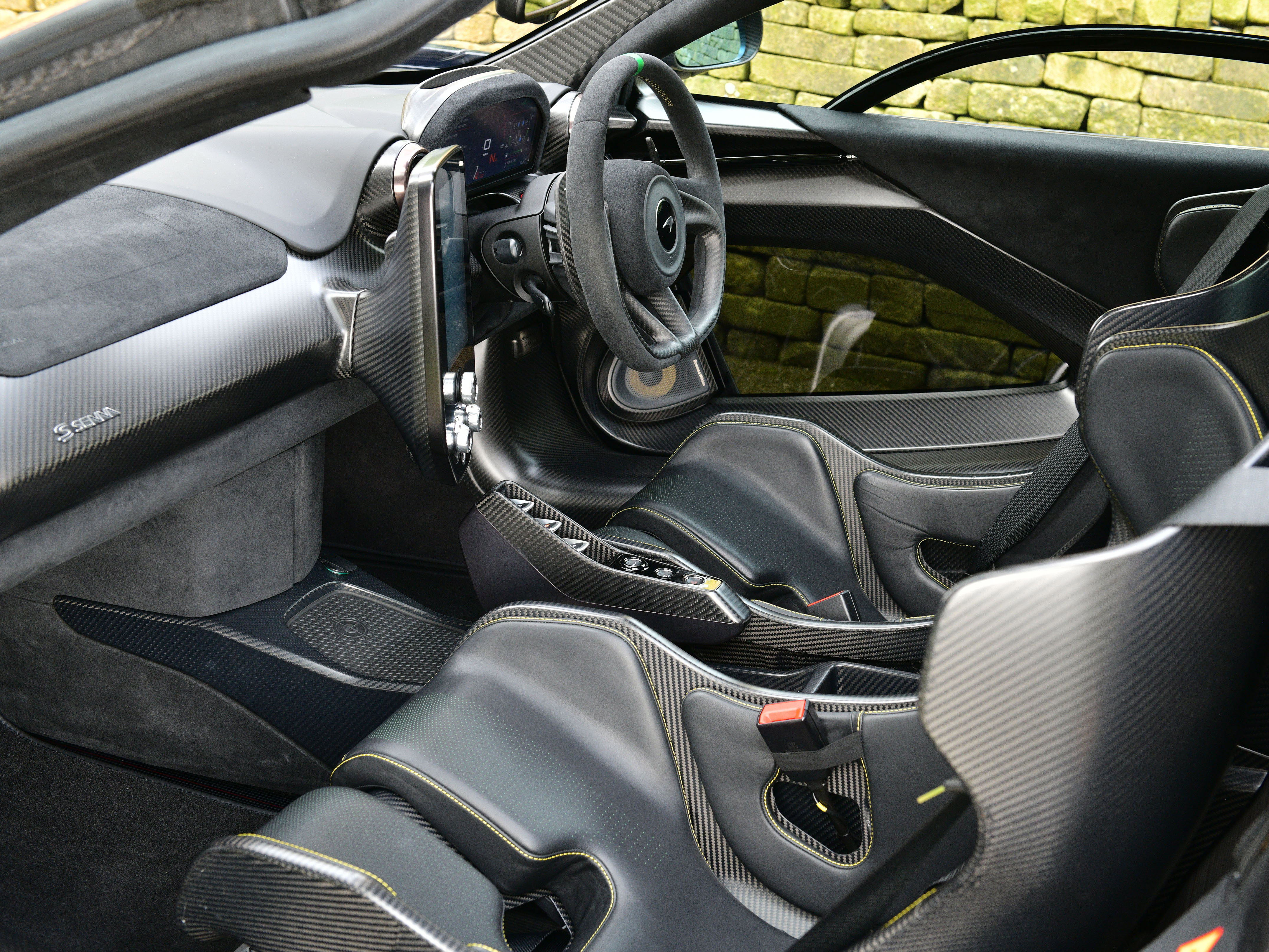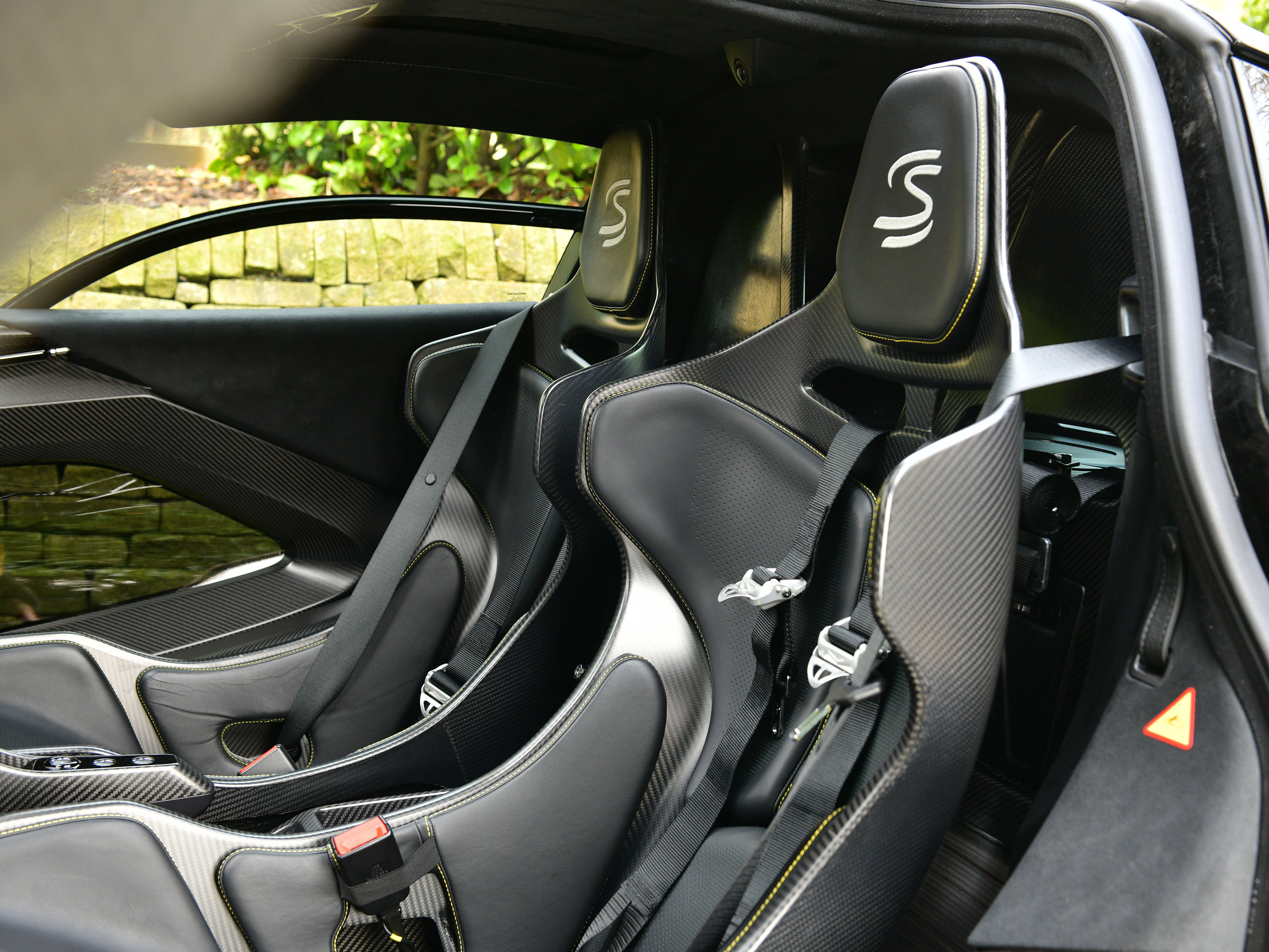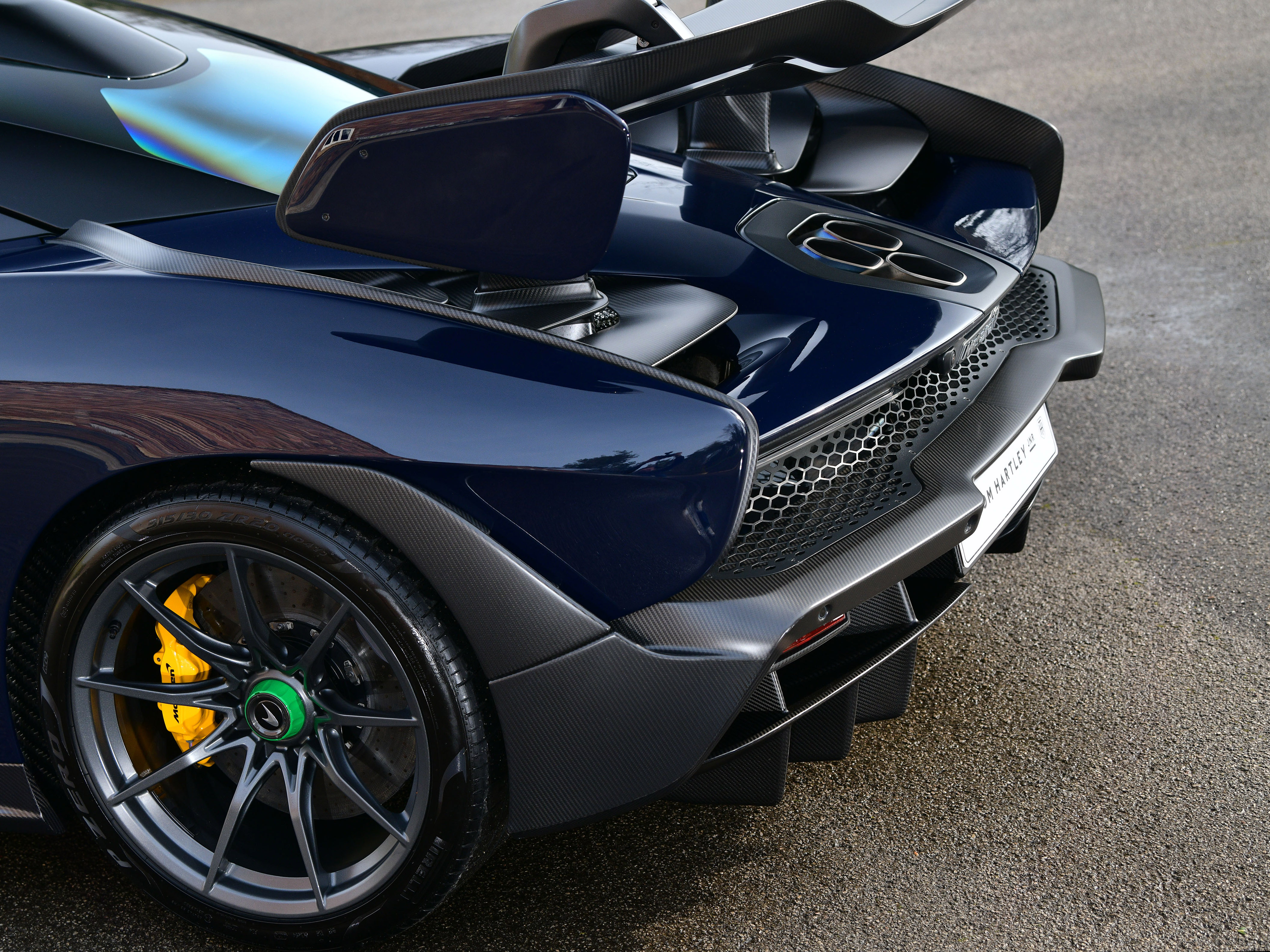 Specified with a host of MSO and factory options that includes a bespoke exterior livery (Brazil Blue paint, Solar Yellow callipers and Laurel Green centre lock nuts) inspired by the distinctive colours of Ayrton Senna’s iconic helmet. Other factory options include: Gorilla Glass on exterior door upper and lower door panel, soft close doors, MSO bespoke interior trim, Jet black leather seat pads with Laurel Green perforation and Solar Yellow contrast stitching, Solar Yellow contrast stitching to steering wheel, MSO bespoke steering wheel centre band in Laurel Green, MSO bespoke embroidered on headrests (double S logo in stone grey), Bowers & Wilkins 7 speaker audio system, 6 point harness in black, air conditioning, branded floor mat set, vehicle lifting system, carbon door mirrors, MSO bespoke satin VCF front aero blades, MSO darkest limo tint applied to upper and lower glass panels, sports exhaust, exhaust heatshield – dark stealth, carbon ceramic breaks, ultra-lightweight 9-spoke wheels, fire extinguisher, parking sensors front and rear, rear parking camera and vehicle tracking system.