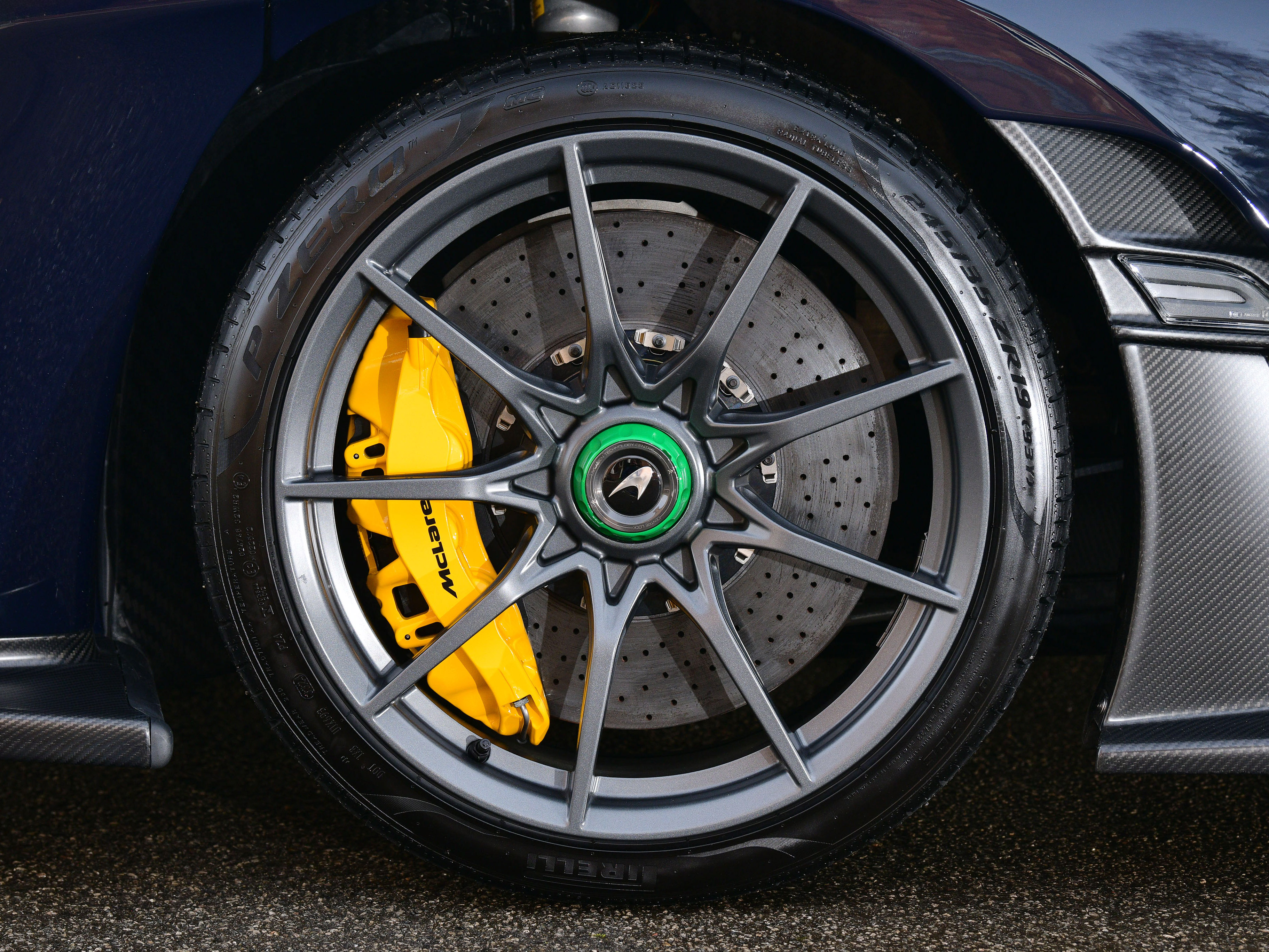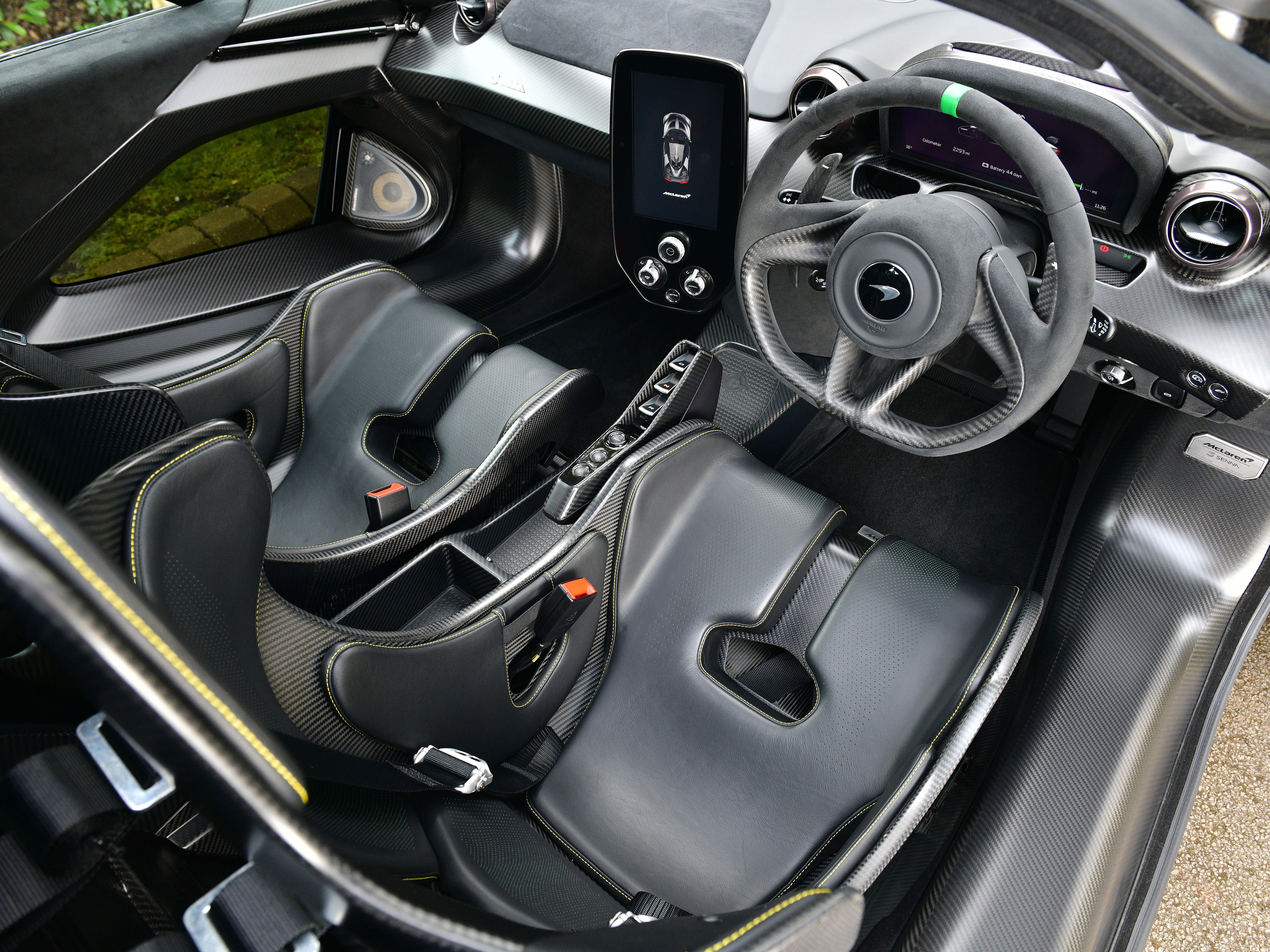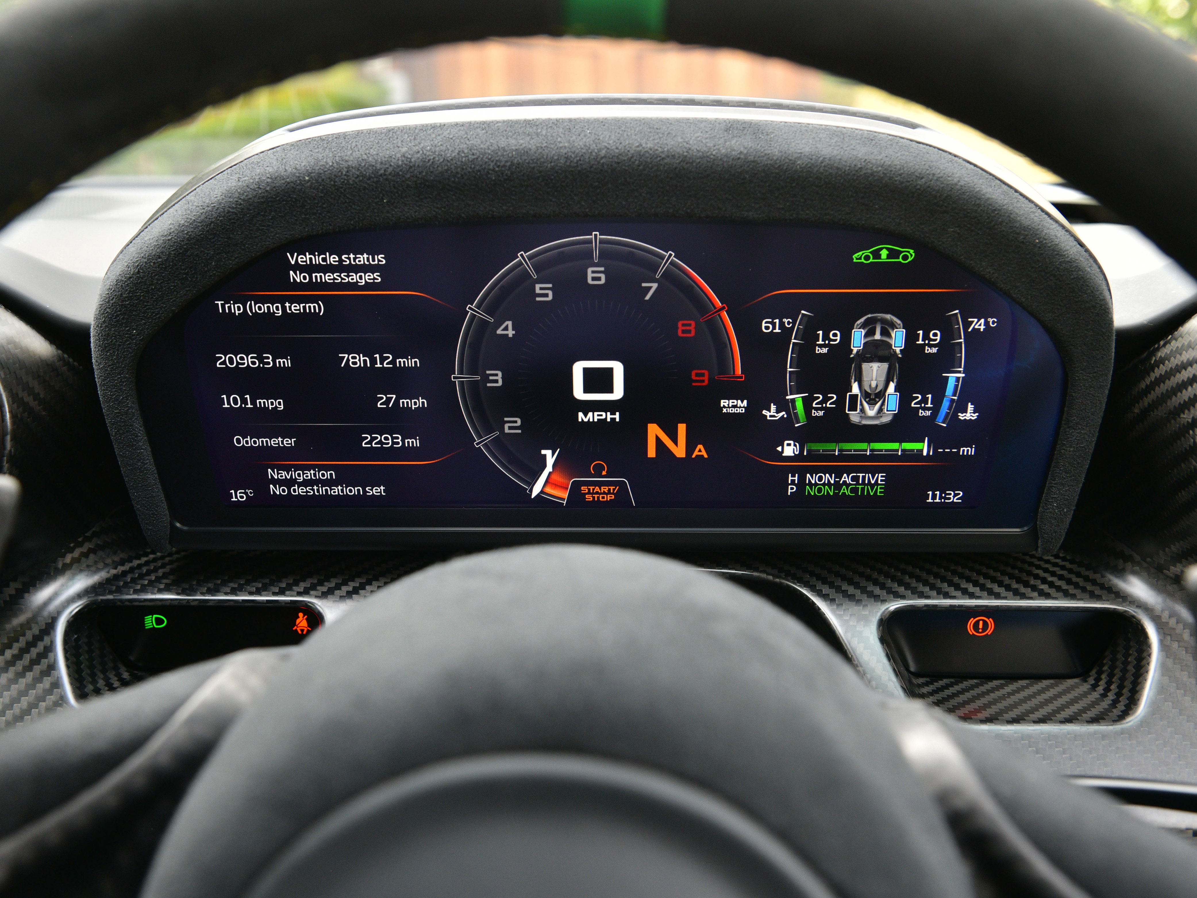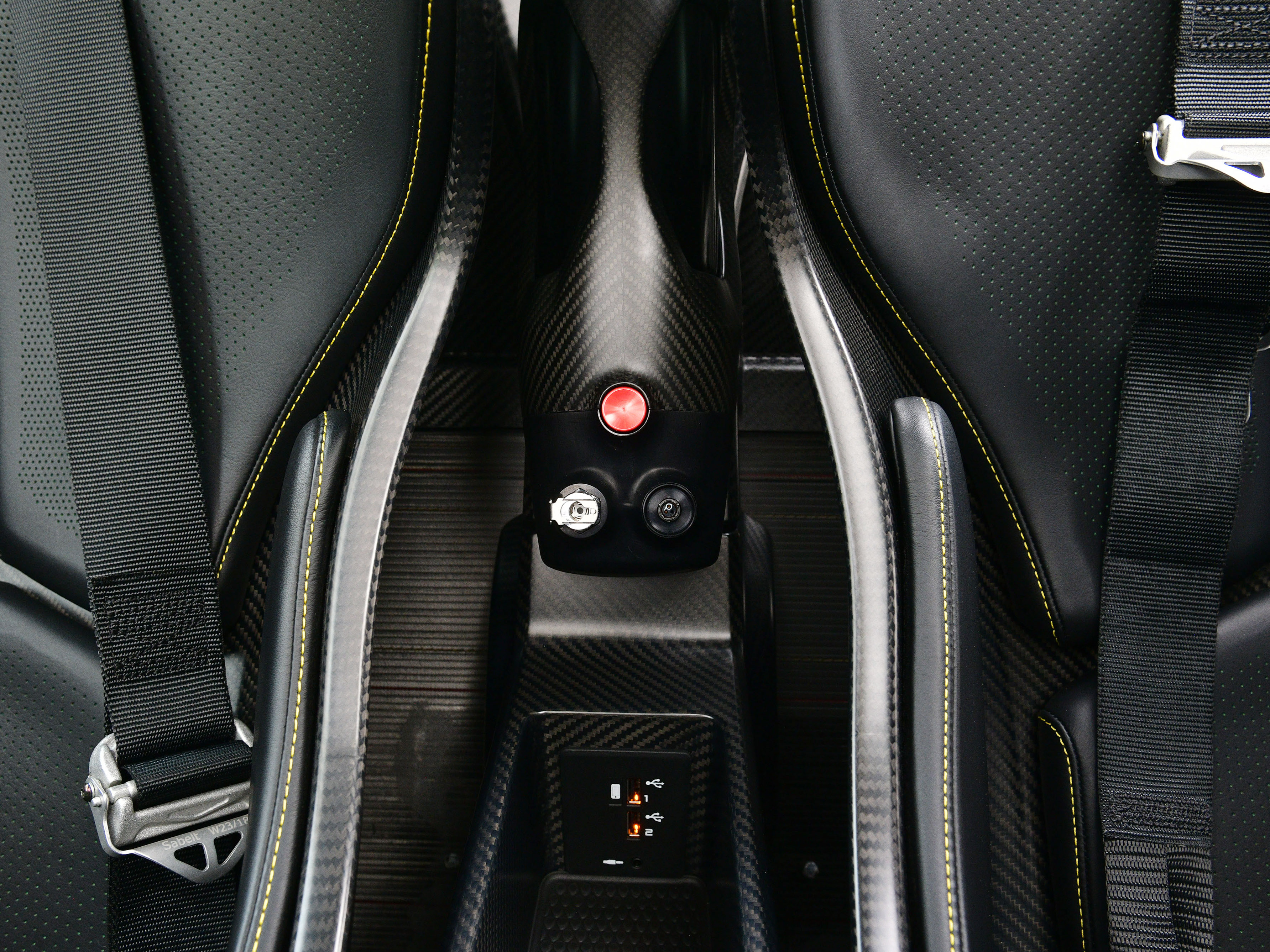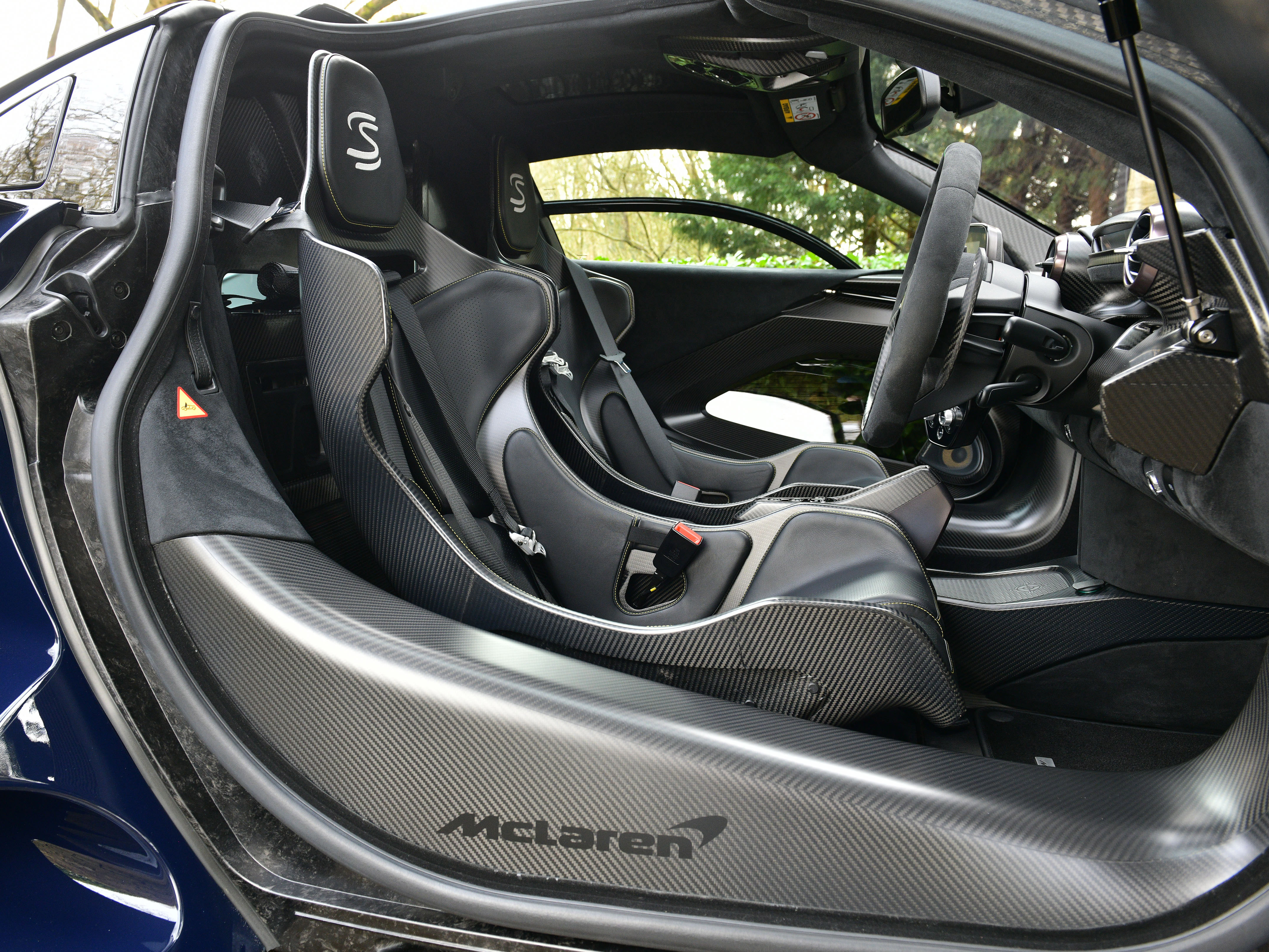 Specified with a host of MSO and factory options that includes a bespoke exterior livery (Brazil Blue paint, Solar Yellow callipers and Laurel Green centre lock nuts) inspired by the distinctive colours of Ayrton Senna’s iconic helmet. Other factory options include: Gorilla Glass on exterior door upper and lower door panel, soft close doors, MSO bespoke interior trim, Jet black leather seat pads with Laurel Green perforation and Solar Yellow contrast stitching, Solar Yellow contrast stitching to steering wheel, MSO bespoke steering wheel centre band in Laurel Green, MSO bespoke embroidered on headrests (double S logo in stone grey), Bowers & Wilkins 7 speaker audio system, 6 point harness in black, air conditioning, branded floor mat set, vehicle lifting system, carbon door mirrors, MSO bespoke satin VCF front aero blades, MSO darkest limo tint applied to upper and lower glass panels, sports exhaust, exhaust heatshield – dark stealth, carbon ceramic breaks, ultra-lightweight 9-spoke wheels, fire extinguisher, parking sensors front and rear, rear parking camera and vehicle tracking system.