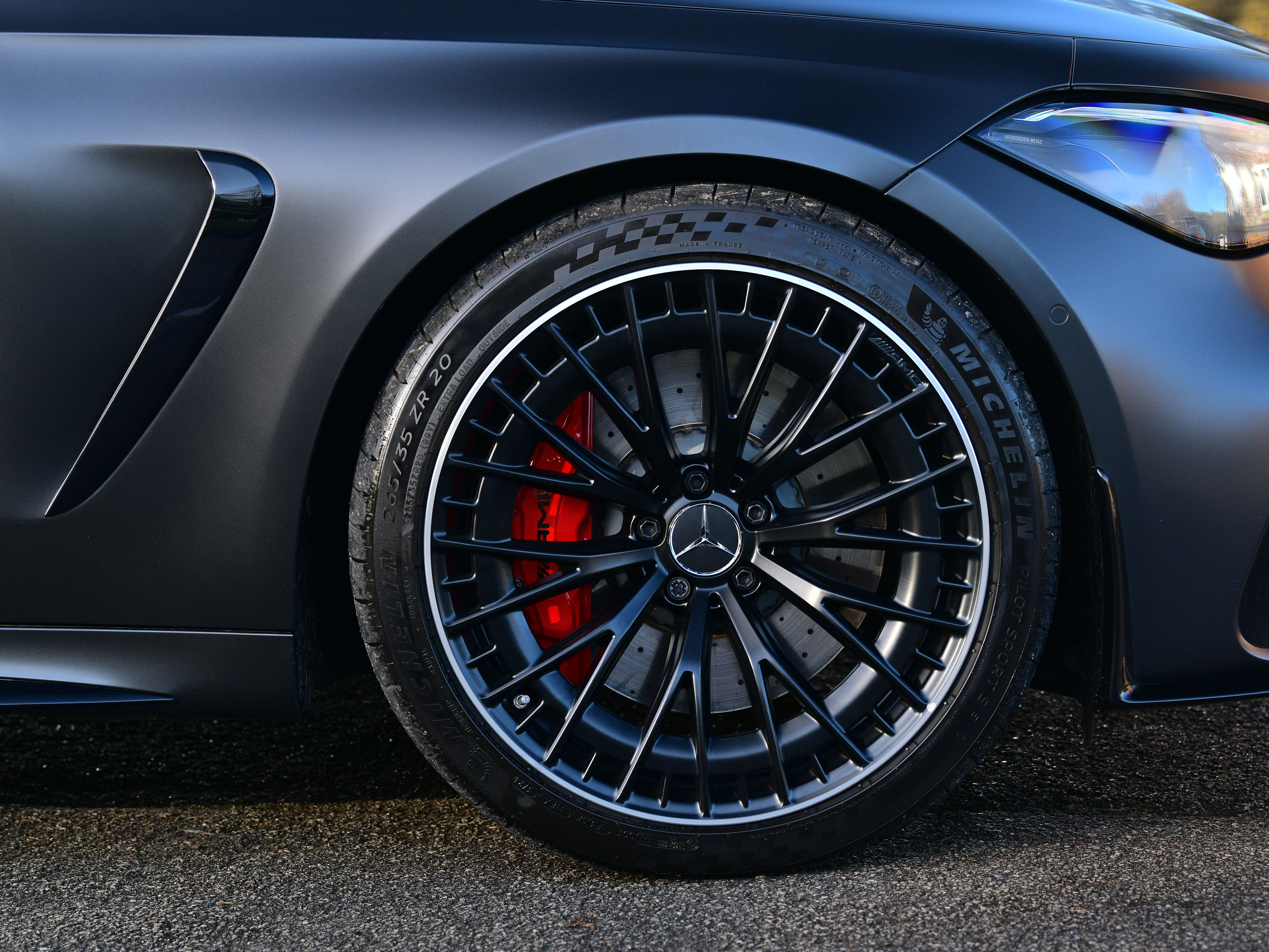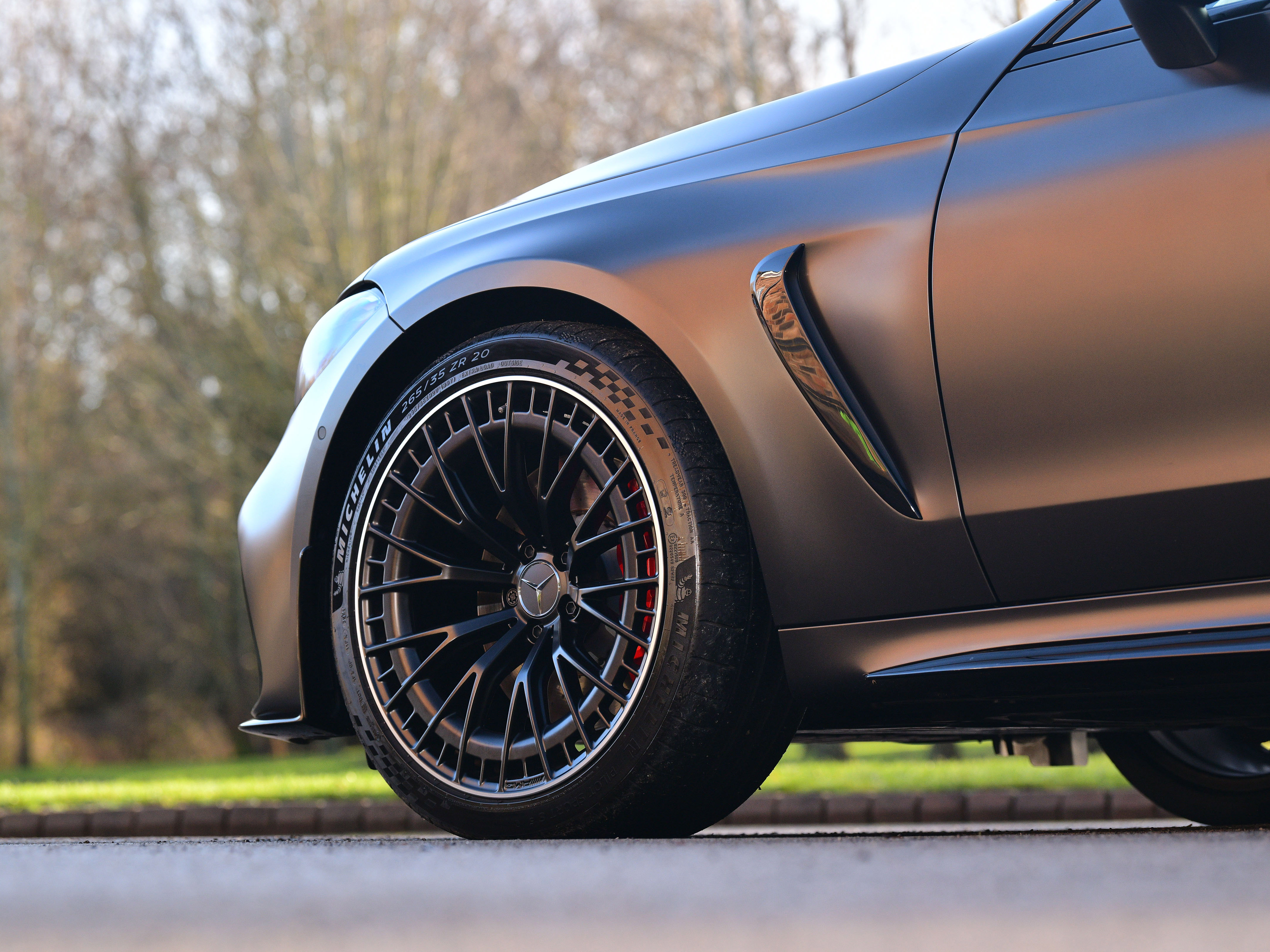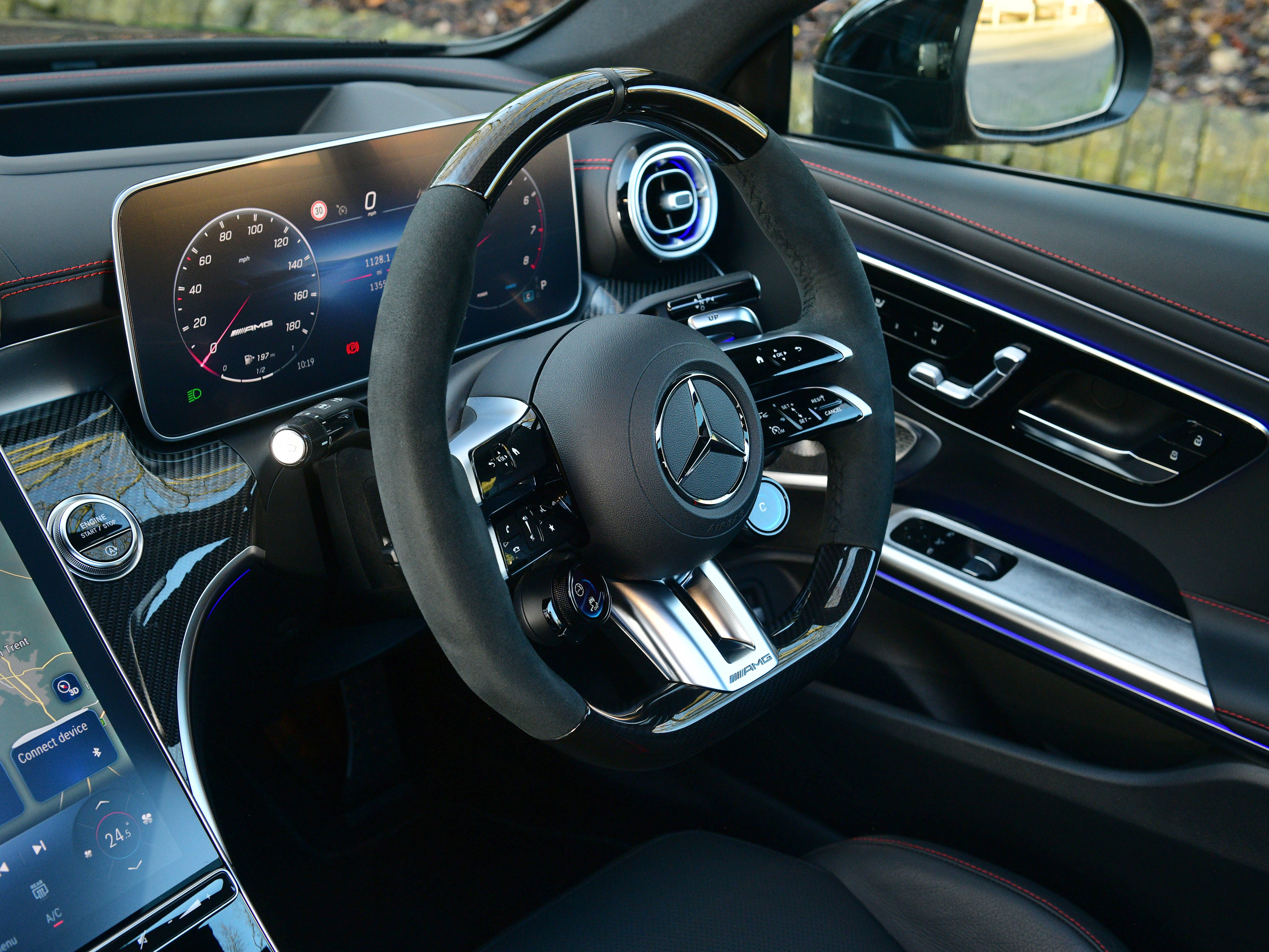 Ordered with a host of optional extras and features that include: pro performance package, Manufaktur graphite grey magno paint, smartphone integration package, Apple CarPlay, Android Auto, dashcam, blind spot assist, active parking assist with park-tronic, AMG performance seats, power front left seat with memory function, driver seat electrically adjustable with memory, active lane keeping assist, collision prevention assist, twin cup holder, AMG styling package, climatized front seats, multi-contour front seats – driver and passenger, panoramic sliding sunroof, head-up display, widescreen cockpit, tyre pressure monitoring system, electrically folding mirrors, 360 degrees camera, traffic sign assist, memory package electrically adjustable driver’s seat, storage package, windscreen wiper with rain sensor, AMG ride control suspension, centre console in high-gloss black, automatic climate control, AMG body styling, interior light package, belt feeder, Mercedes-AMG interior, Mercedes-AMG exterior, AMG floor mats, illuminated door sills, AMG steering wheel buttons, ambient lighting with projection of brand logo, adaptive high beam assist, AMG fuel cap, USB package plus, wheel-arch widening for AMG wheels, Burmester 3D surround sound system, heat-insulating dark-tinted glass, remote boot closing, ambient lighting plus, wireless charging with connection via bluetooth, AMG carbon fibre / black piano lacquer trim, AMG performance steering wheel in carbon fibre design, parking package with 360 camera, AMG night package, AMG dynamic plus package, AMG spoiler lip, red-painted brake callipers and rear-axle steering.