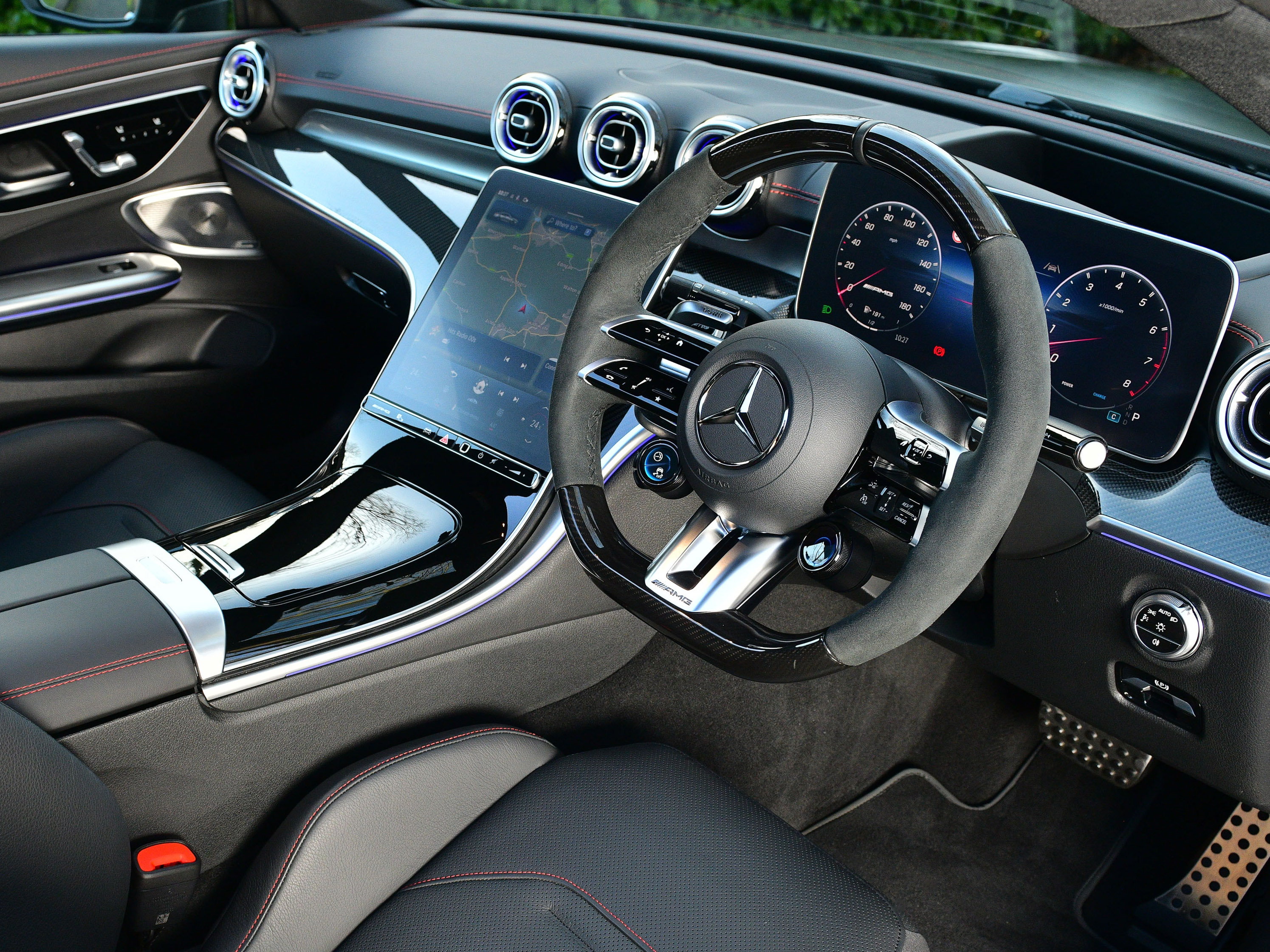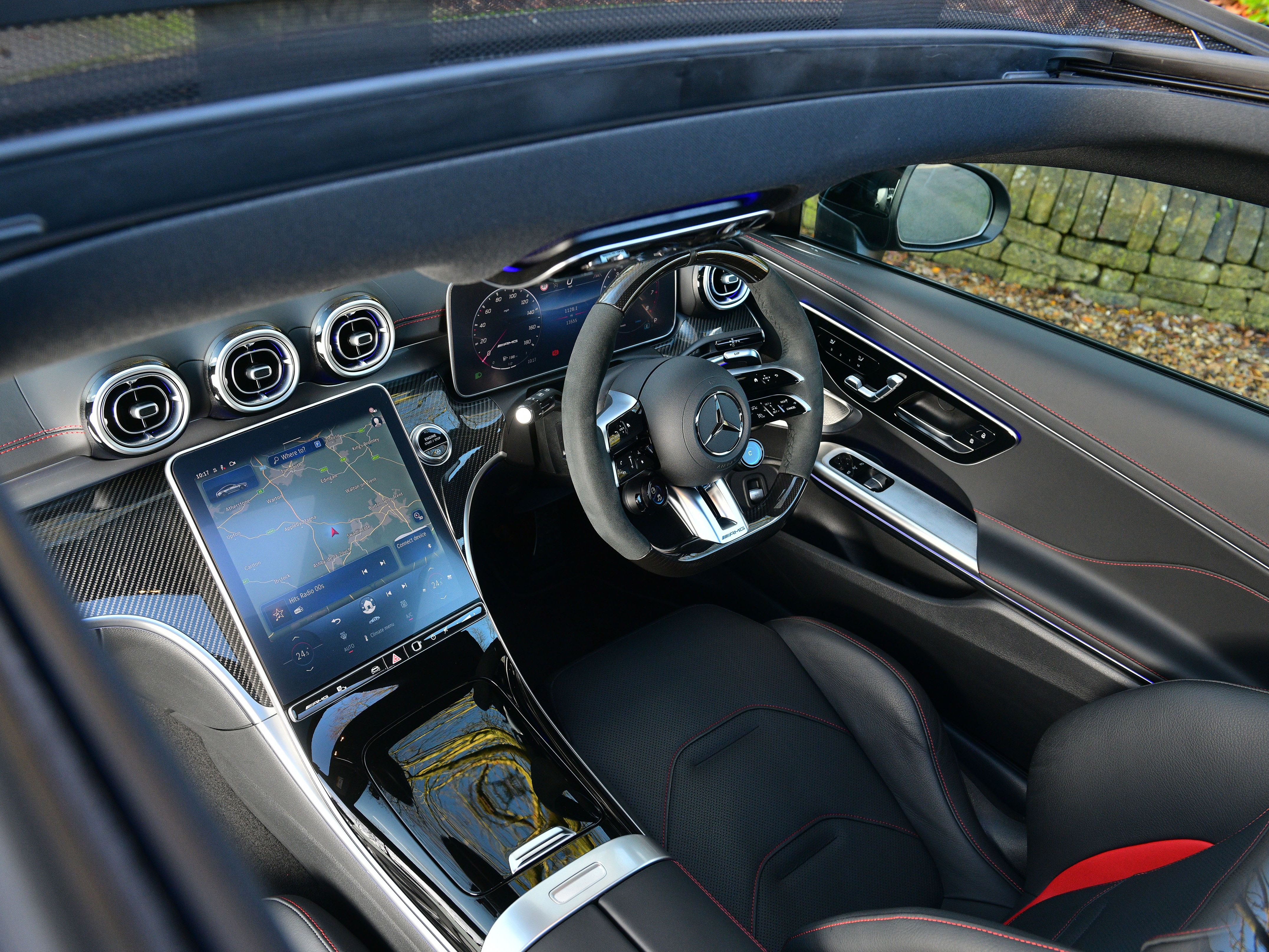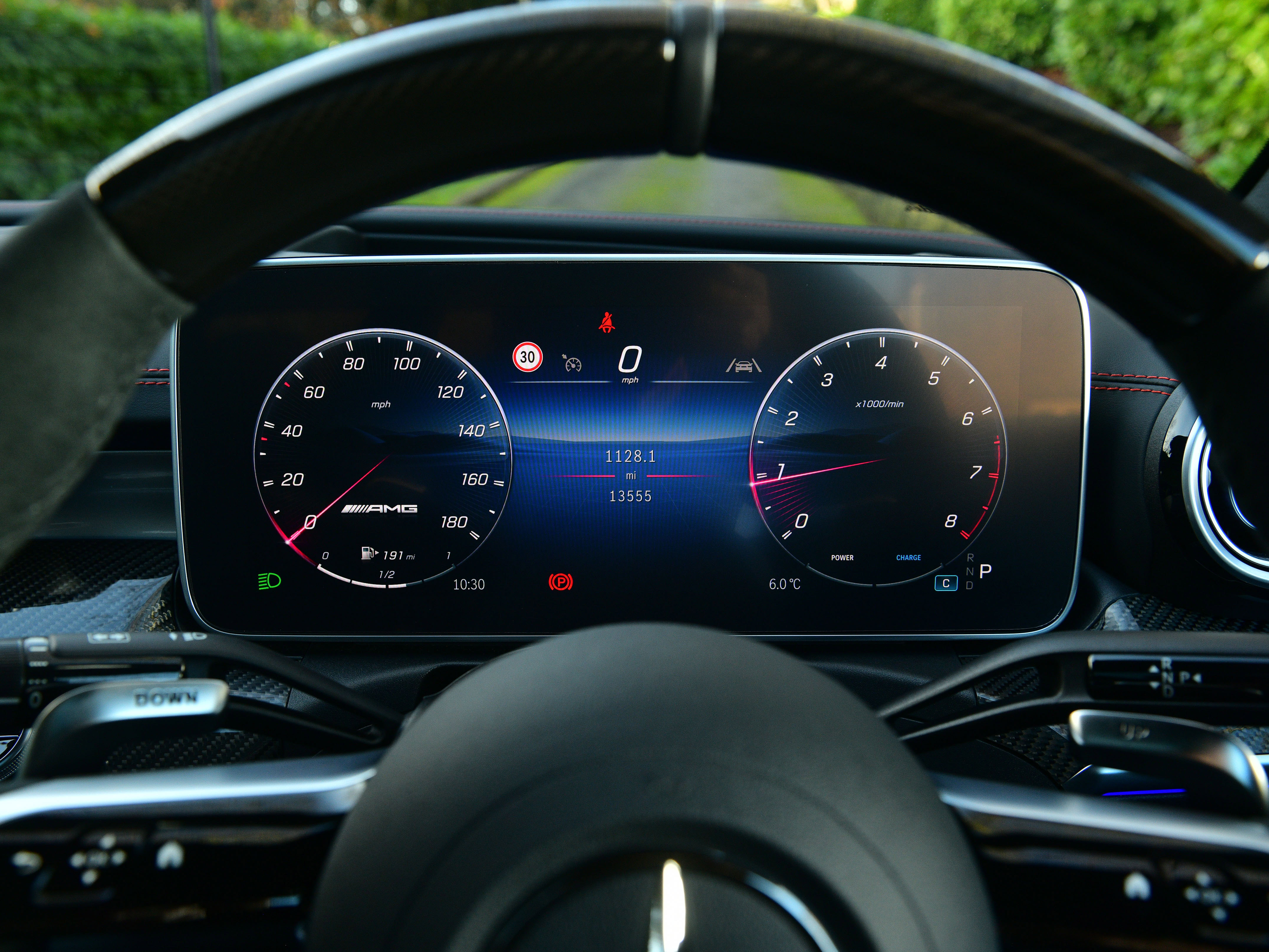 Ordered with a host of optional extras and features that include: pro performance package, Manufaktur graphite grey magno paint, smartphone integration package, Apple CarPlay, Android Auto, dashcam, blind spot assist, active parking assist with park-tronic, AMG performance seats, power front left seat with memory function, driver seat electrically adjustable with memory, active lane keeping assist, collision prevention assist, twin cup holder, AMG styling package, climatized front seats, multi-contour front seats – driver and passenger, panoramic sliding sunroof, head-up display, widescreen cockpit, tyre pressure monitoring system, electrically folding mirrors, 360 degrees camera, traffic sign assist, memory package electrically adjustable driver’s seat, storage package, windscreen wiper with rain sensor, AMG ride control suspension, centre console in high-gloss black, automatic climate control, AMG body styling, interior light package, belt feeder, Mercedes-AMG interior, Mercedes-AMG exterior, AMG floor mats, illuminated door sills, AMG steering wheel buttons, ambient lighting with projection of brand logo, adaptive high beam assist, AMG fuel cap, USB package plus, wheel-arch widening for AMG wheels, Burmester 3D surround sound system, heat-insulating dark-tinted glass, remote boot closing, ambient lighting plus, wireless charging with connection via bluetooth, AMG carbon fibre / black piano lacquer trim, AMG performance steering wheel in carbon fibre design, parking package with 360 camera, AMG night package, AMG dynamic plus package, AMG spoiler lip, red-painted brake callipers and rear-axle steering.
