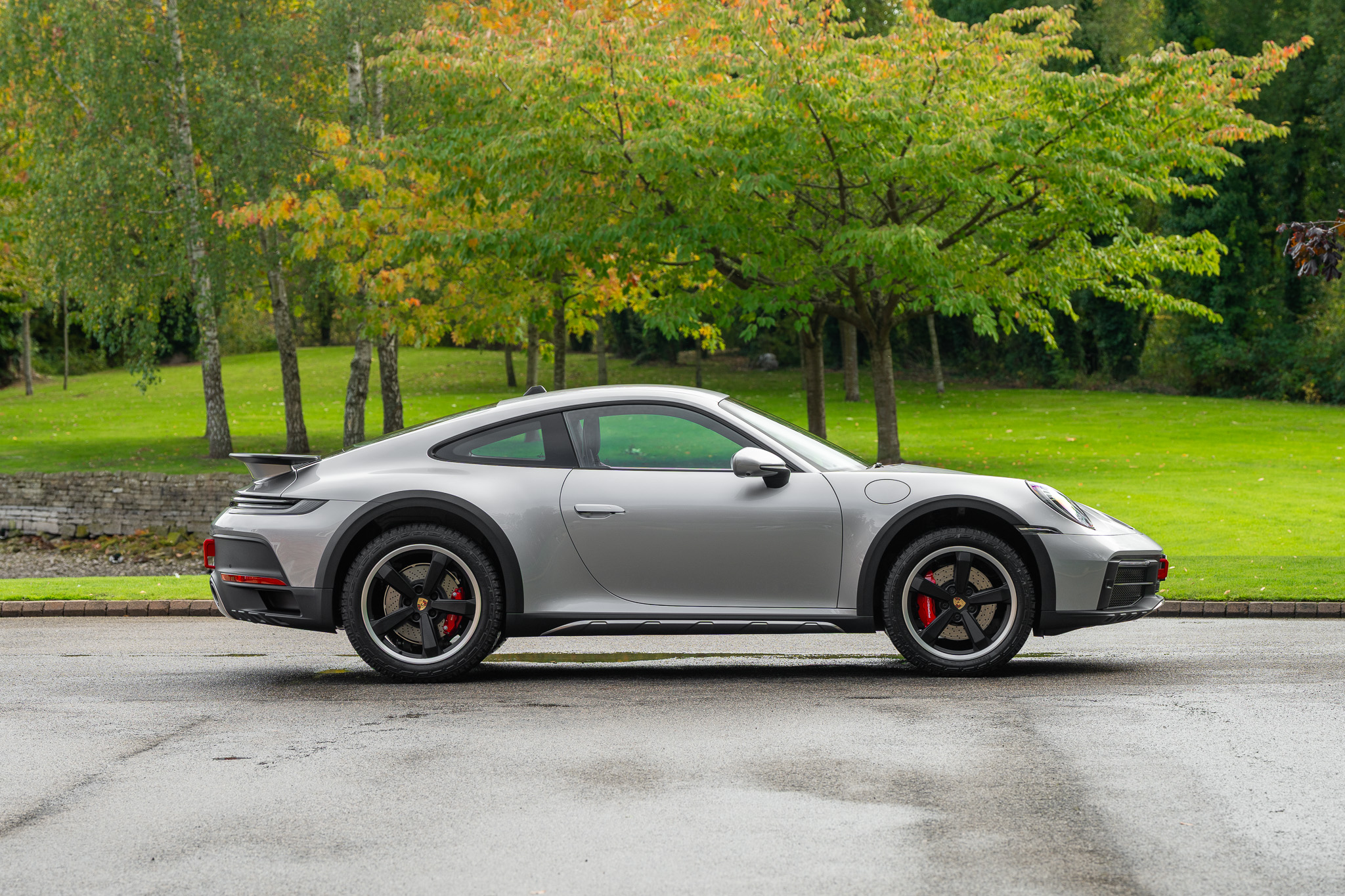 This particular Dakar is car number 1038. Supplied new in the UK, it was specified with an extensive list of factory options and features, including: carbon-fibre lightweight full bucket seats, Race-Tex interior package with extensive leather trim, matt carbon interior package, heated GT sports steering wheel in Race-Tex with matt carbon panel and Shadegreen centre marking, light design package with ambient lighting around the door storage compartments, centre console and rear seats, BOSE surround sound system, Porsche Communication Management with online navigation, mobile phone preparation, audio interfaces and voice control (PCM), smartphone integration with Apple CarPlay and Android Auto, ParkAssist including surround view cameras, cruise control, keyless drive, lightweight noise-insulated glass with privacy glass and grey top-tint windscreen, ioniser, tyre pressure monitoring system (TPM), tinted LED matrix headlights with Porsche Dynamic Light System Plus (PDLS Plus), 911 Dakar logo LED door courtesy lights, wheels painted in satin black with highly polished outer rims, red brake callipers, sports exhaust system with black tailpipes, Porsche dashcam preparation and a painted vehicle key.