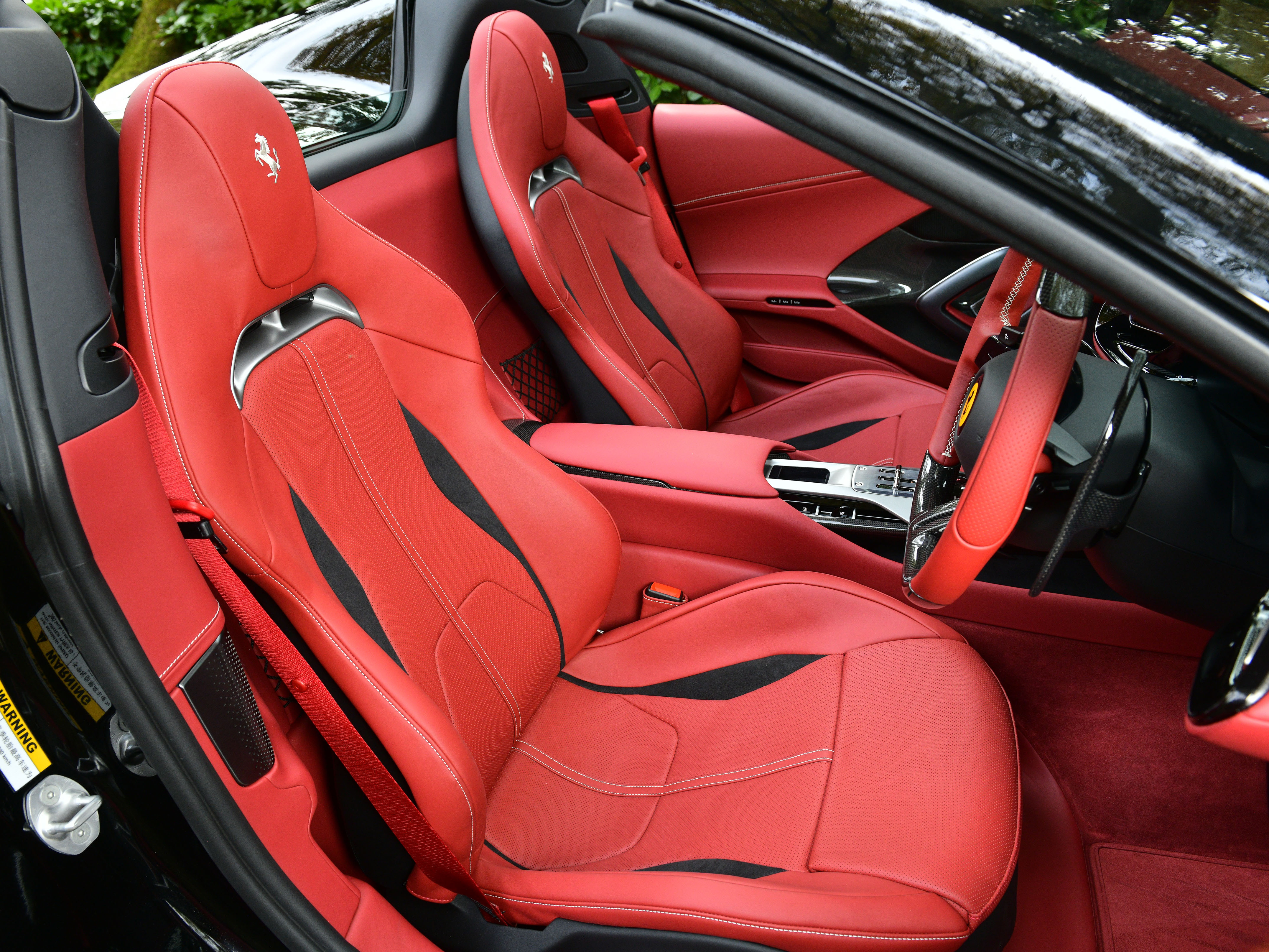 The Spider’s retractable folding hardtop opens or closes in just 14 seconds, even at speeds of up to 28 mph, allowing seamless transition between coupe and open-air motoring. Inside, the cabin features a symmetrical dual-module layout for driver and passenger, delivering exceptional comfort and engagement, crafted with Ferrari’s renowned attention to detail.