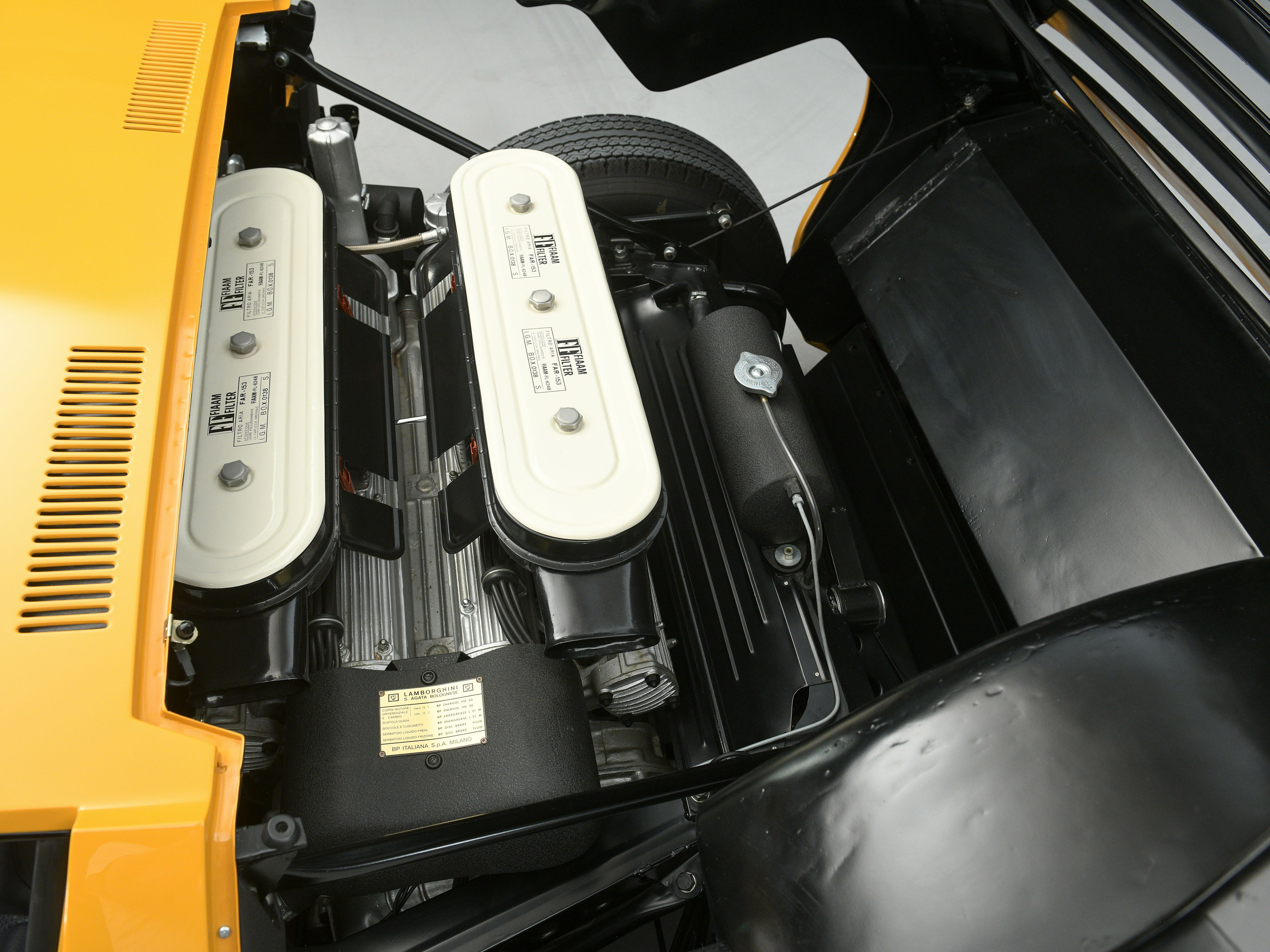 Chassis 3111 was one such example, it was completed at the end of August 1967 and was delivered new to Voitures Paris Monceau on the 2nd September. It was finished in the stunning, and very fitting for the period, colour combination of Giallo Miura over a Blu interior, with only 40 P400s being finished in Giallo Miura from new. The car was built with a selection of technical updates, including a reinforced front cross member and an additional spacer under the alternator pulley to optimise its operation.